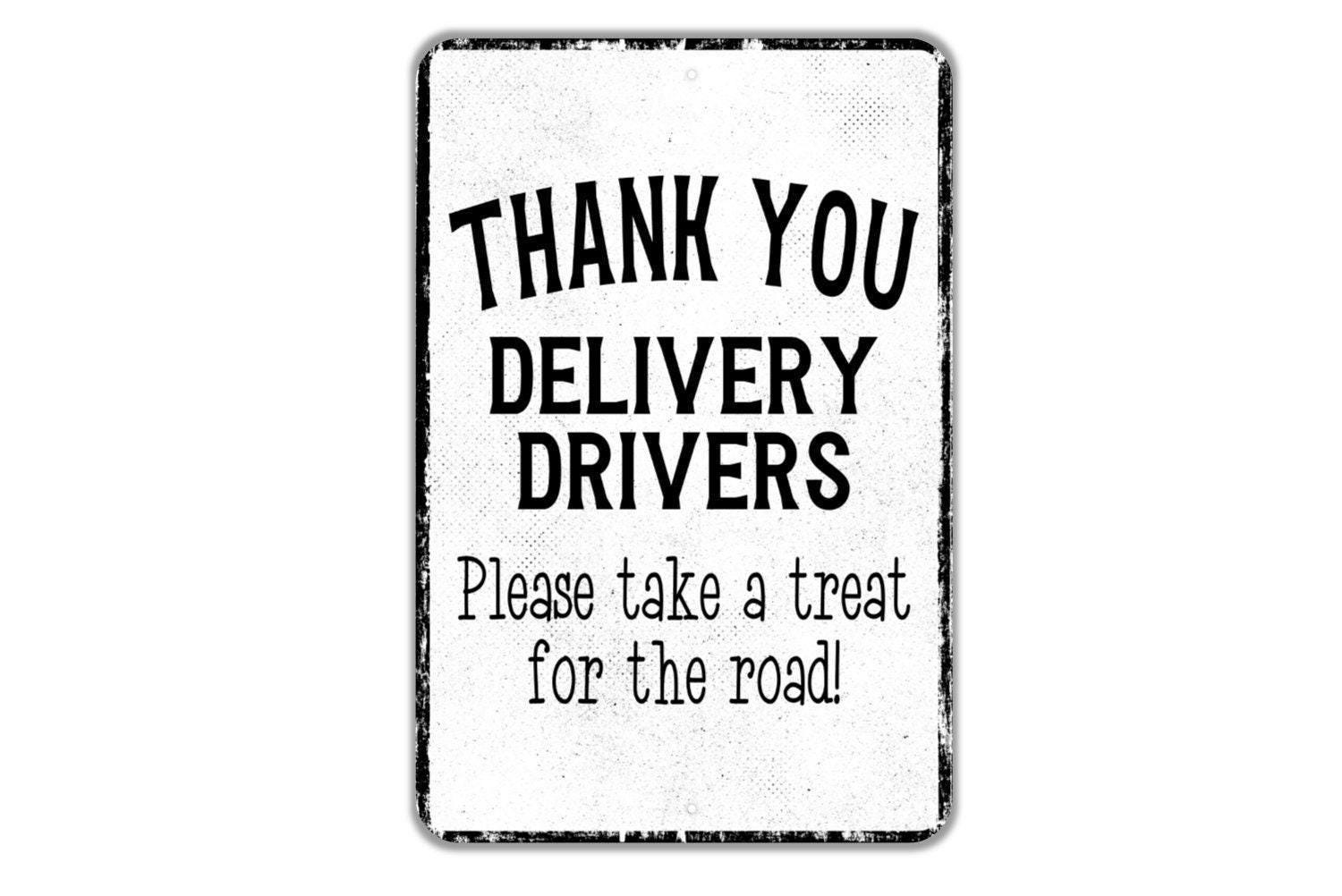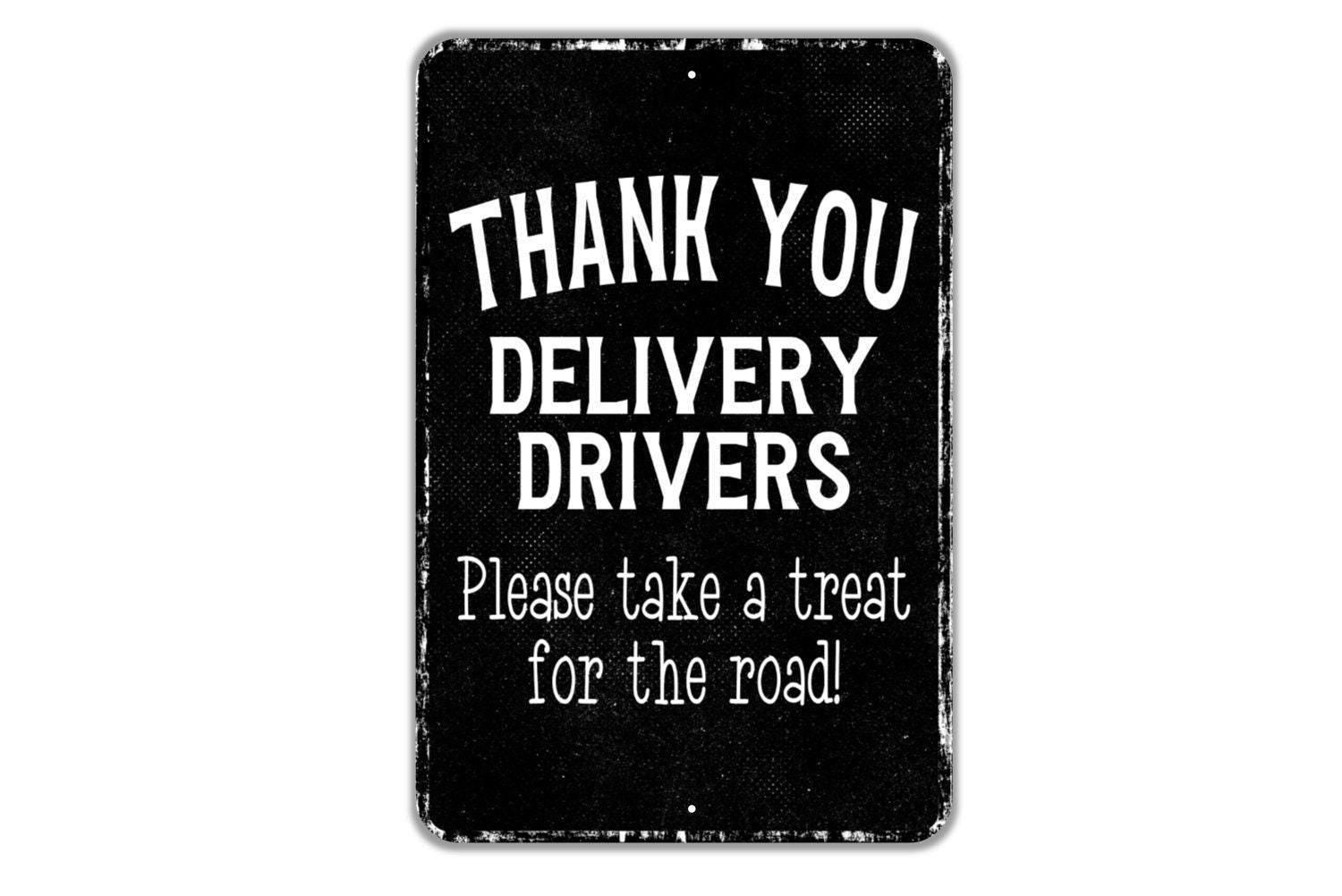 Thank You Delivery Drivers Please Take A Treat For The Road Sign Metal Wall Art or Vinyl Sticker for Porch, Entryway, Package Drop