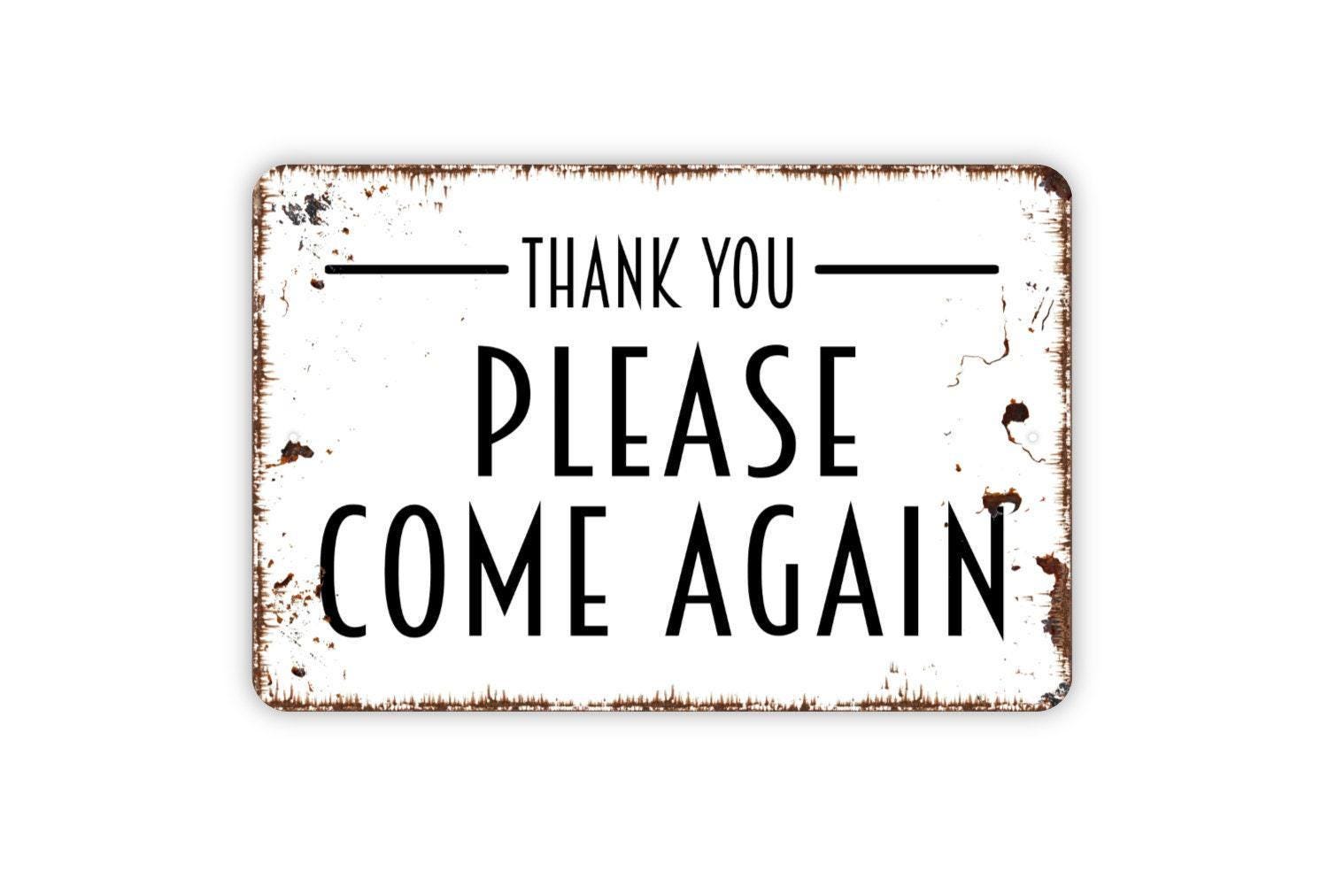 Thank You Please Come Again Sign | Rustic Business Wall Sign for Shop, Café, or Restaurant | Metal Sign or Vinyl Sticker | Welcome Guests