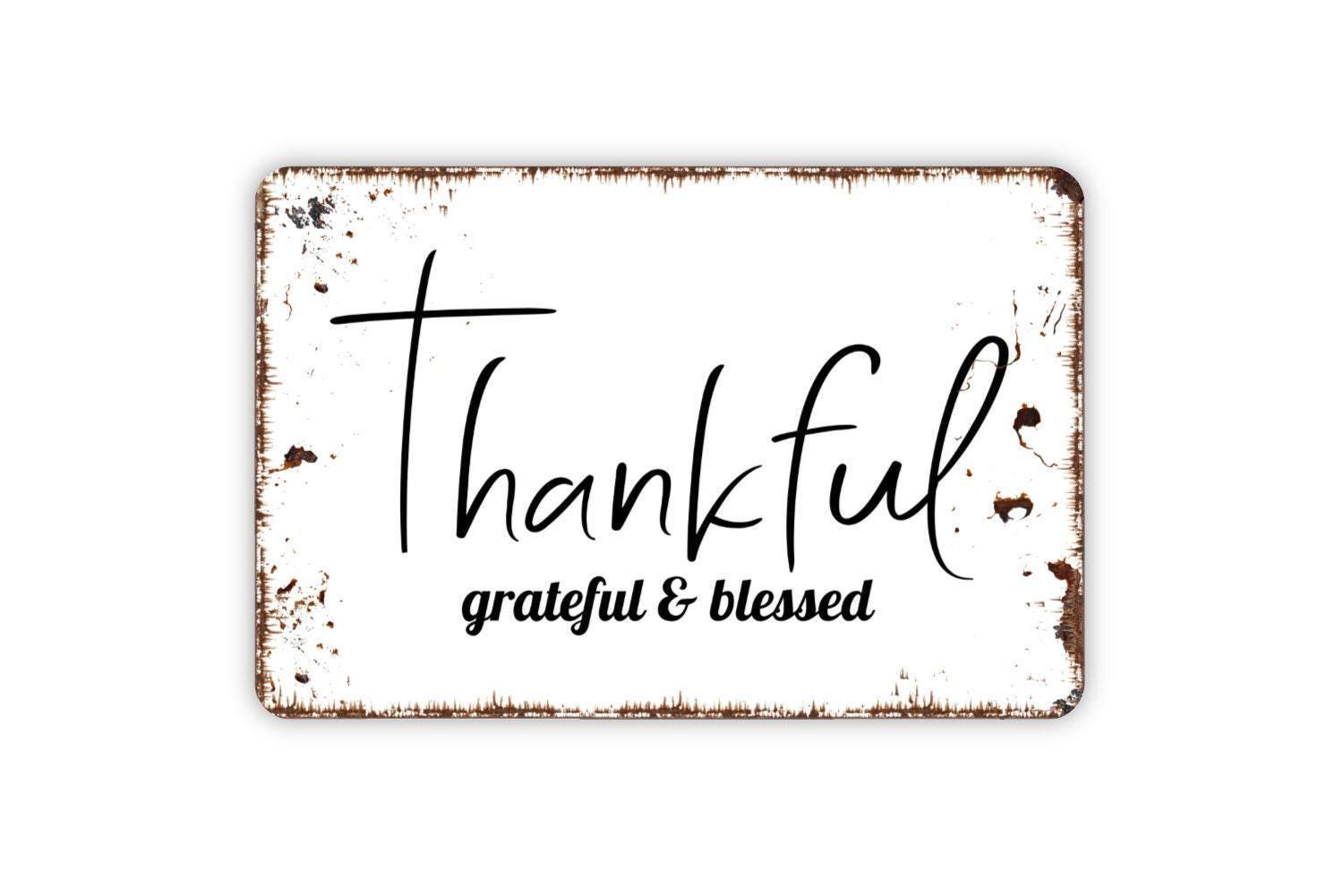 Thankful Grateful And Blessed Sign | Rustic Farmhouse Wall Décor for Kitchen, Living Room, or Porch | Metal Sign or Vinyl Sticker Gift