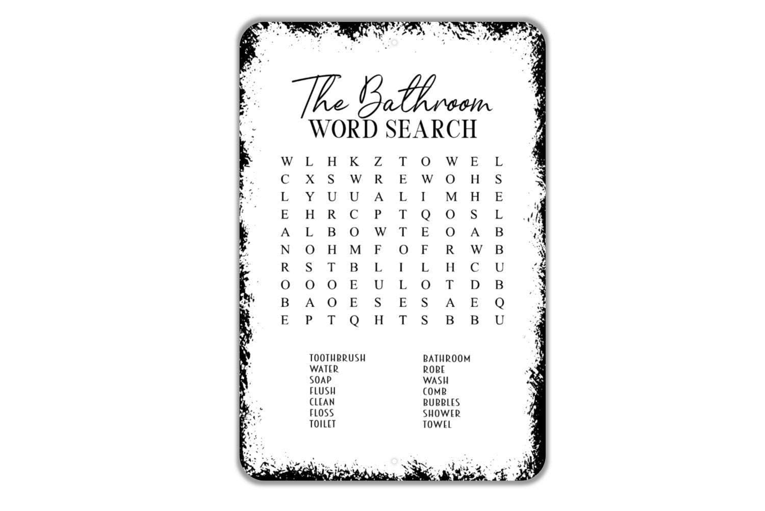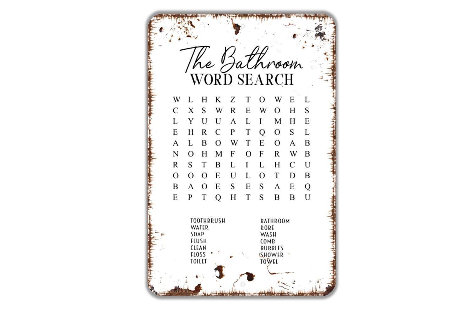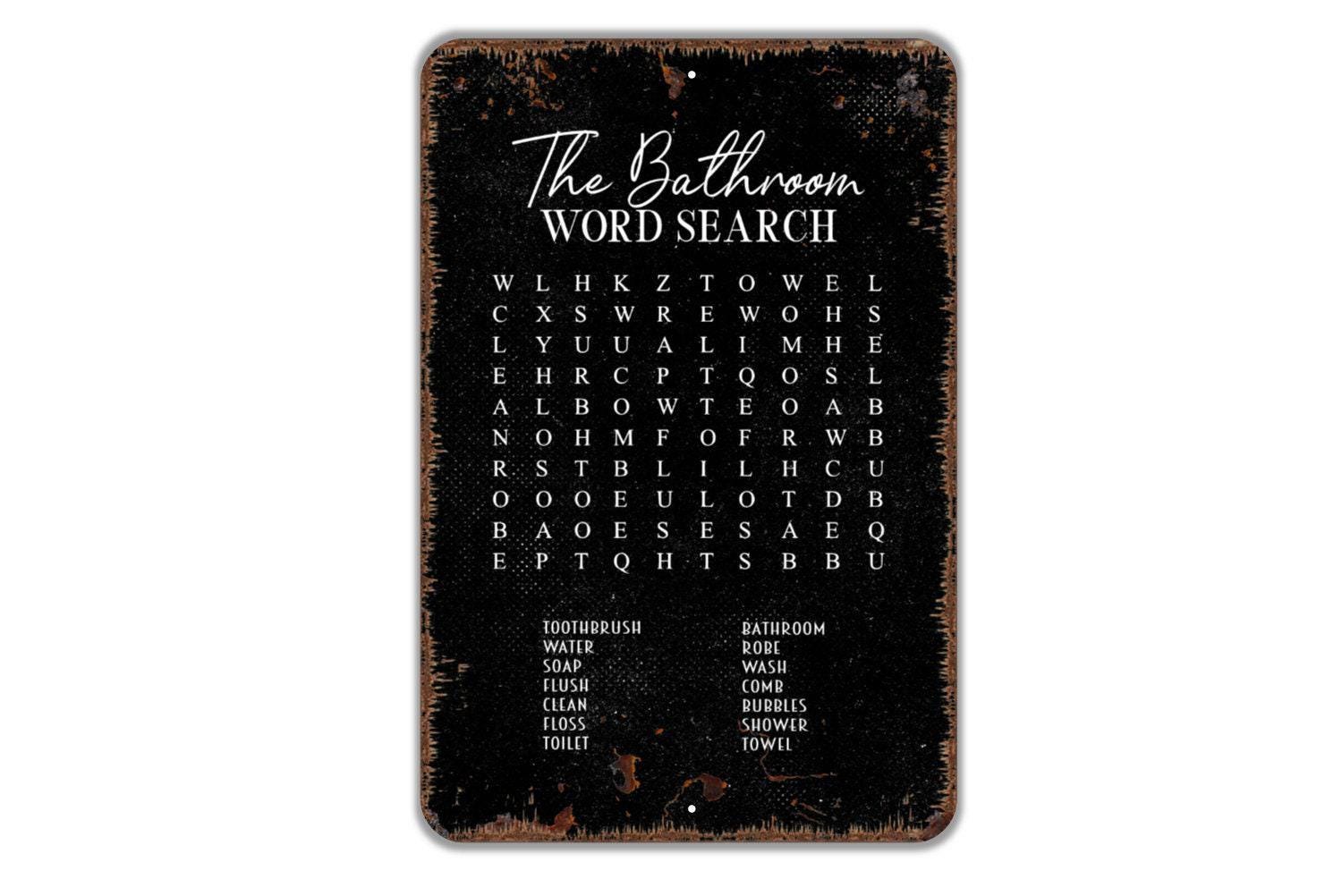 The Bathroom Word Search Sign - Word Game Restroom Metal Wall Art - Indoor or Outdoor