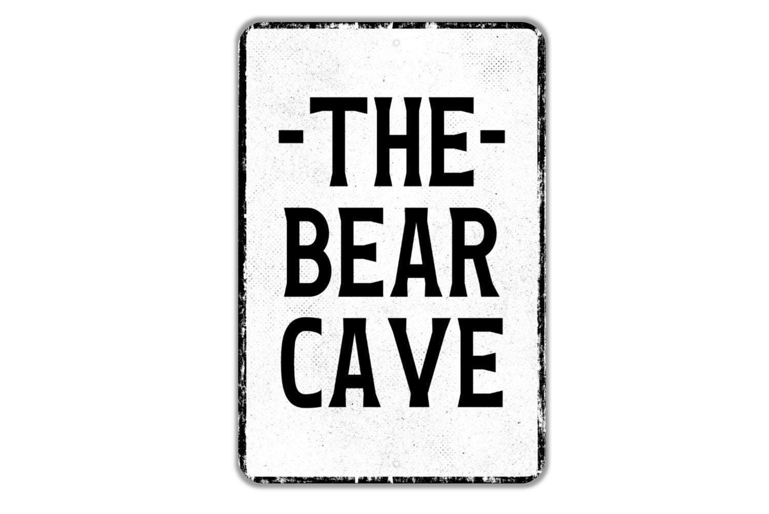 The Bear Cave Sign | Rustic Cabin Lodge Wall Decor | Man Cave or Den Wall Art | Backyard Campfire Patio Sign | Vinyl Sticker or Metal Sign