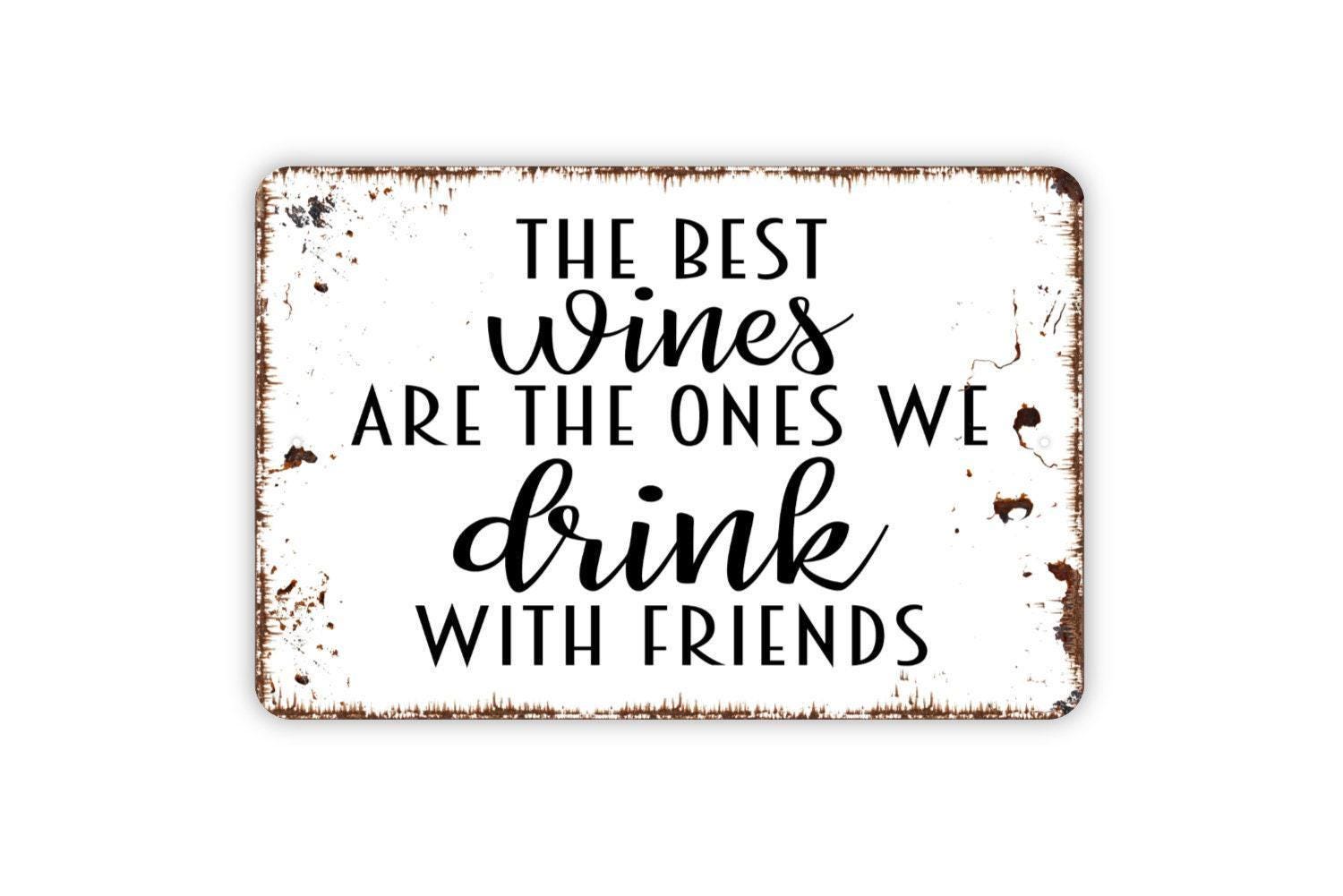The Best Wines Are The Ones We Drink With Friends Sign | Wine Lover Kitchen, Dining, or Bar Wall Sign | Metal Sign or Vinyl Sticker Gift
