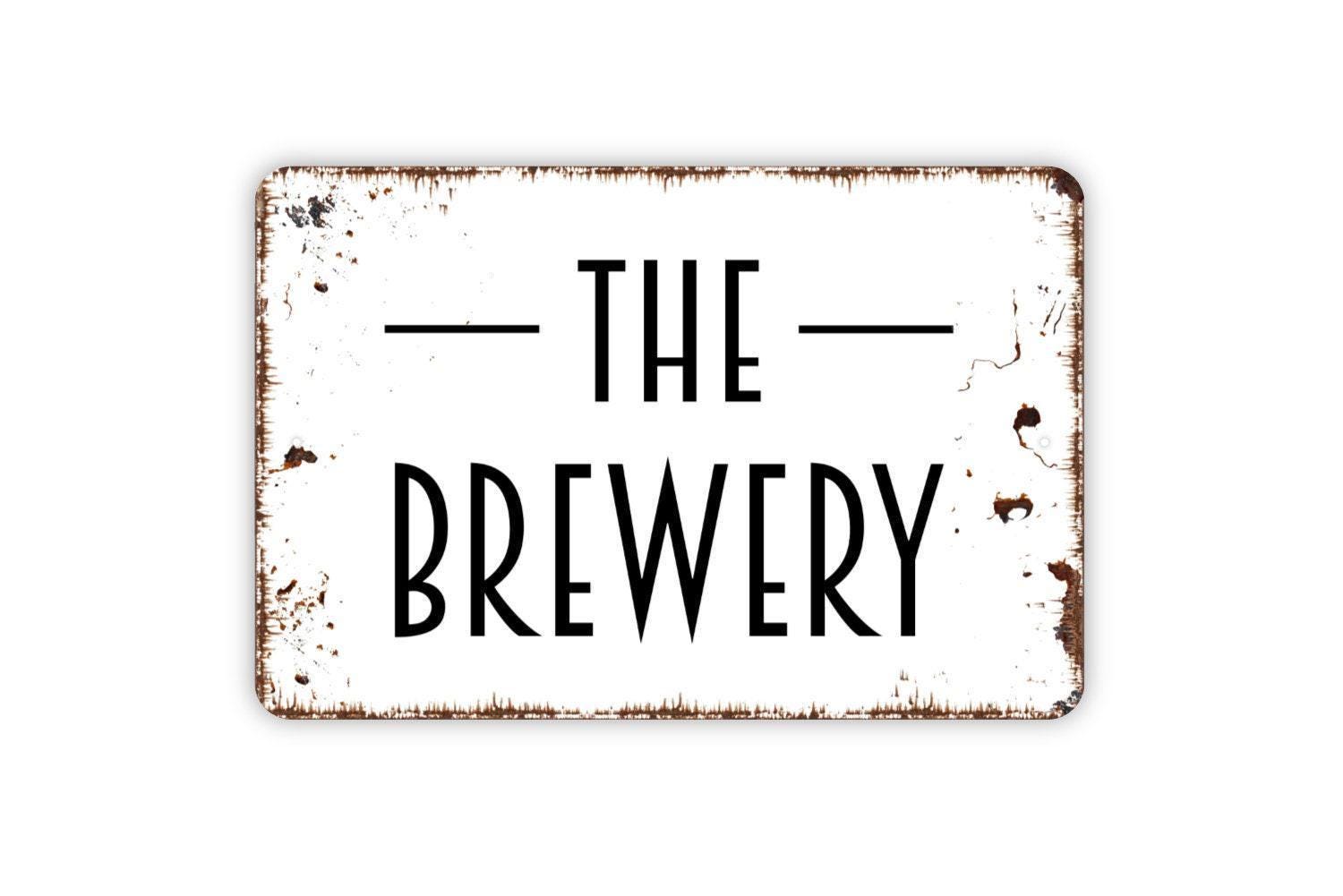 The Brewery Sign | Rustic Beer Bar Pub Wall Decor | Metal Sign or Vinyl Sticker for Kitchen Man Cave Lounge Restaurant