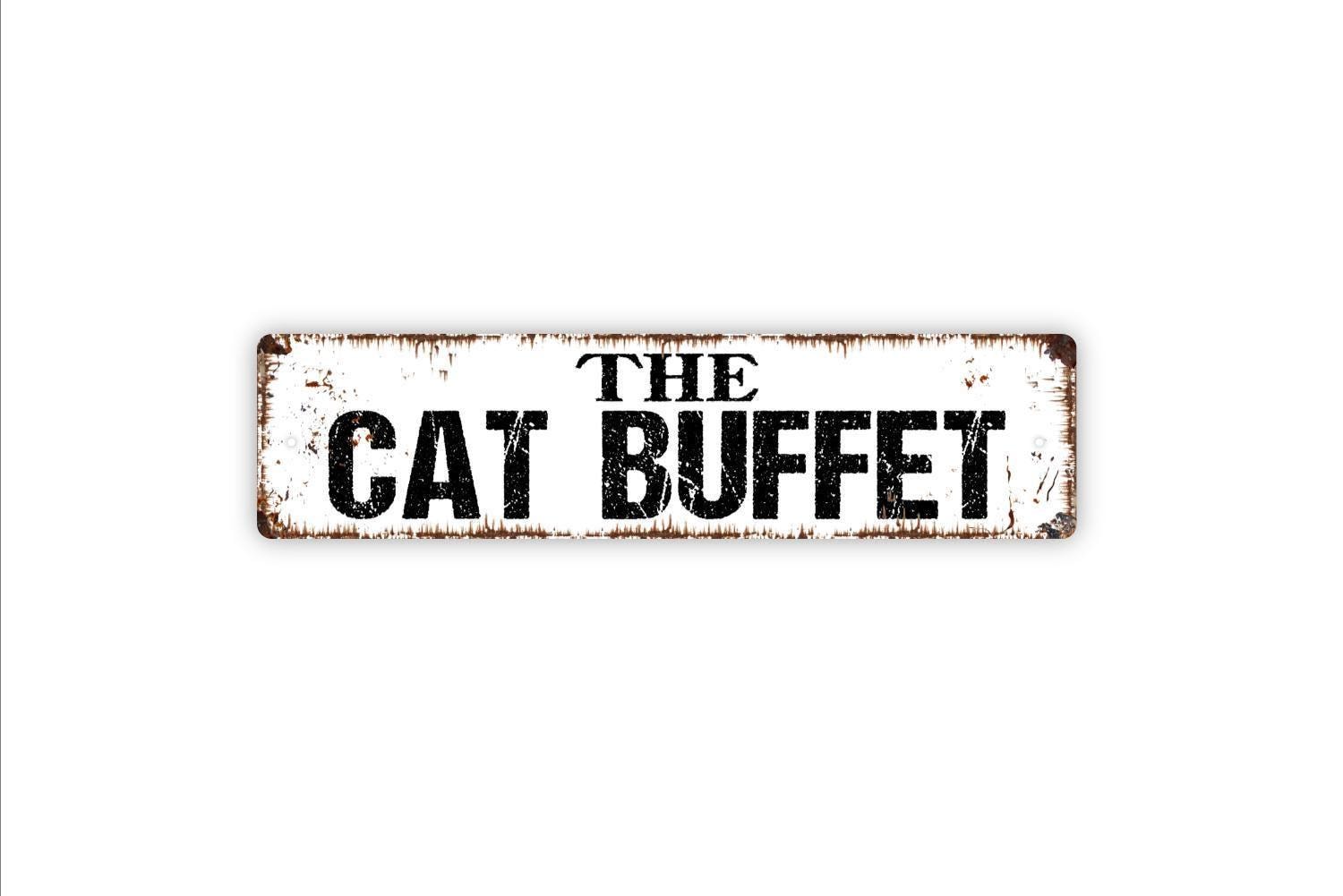 The Cat Buffet Sign - Cat Kitten Eatery Food Water Dish Kitty Vinyl Sticker Or Street Metal Sign or Door Name Plate Plaque