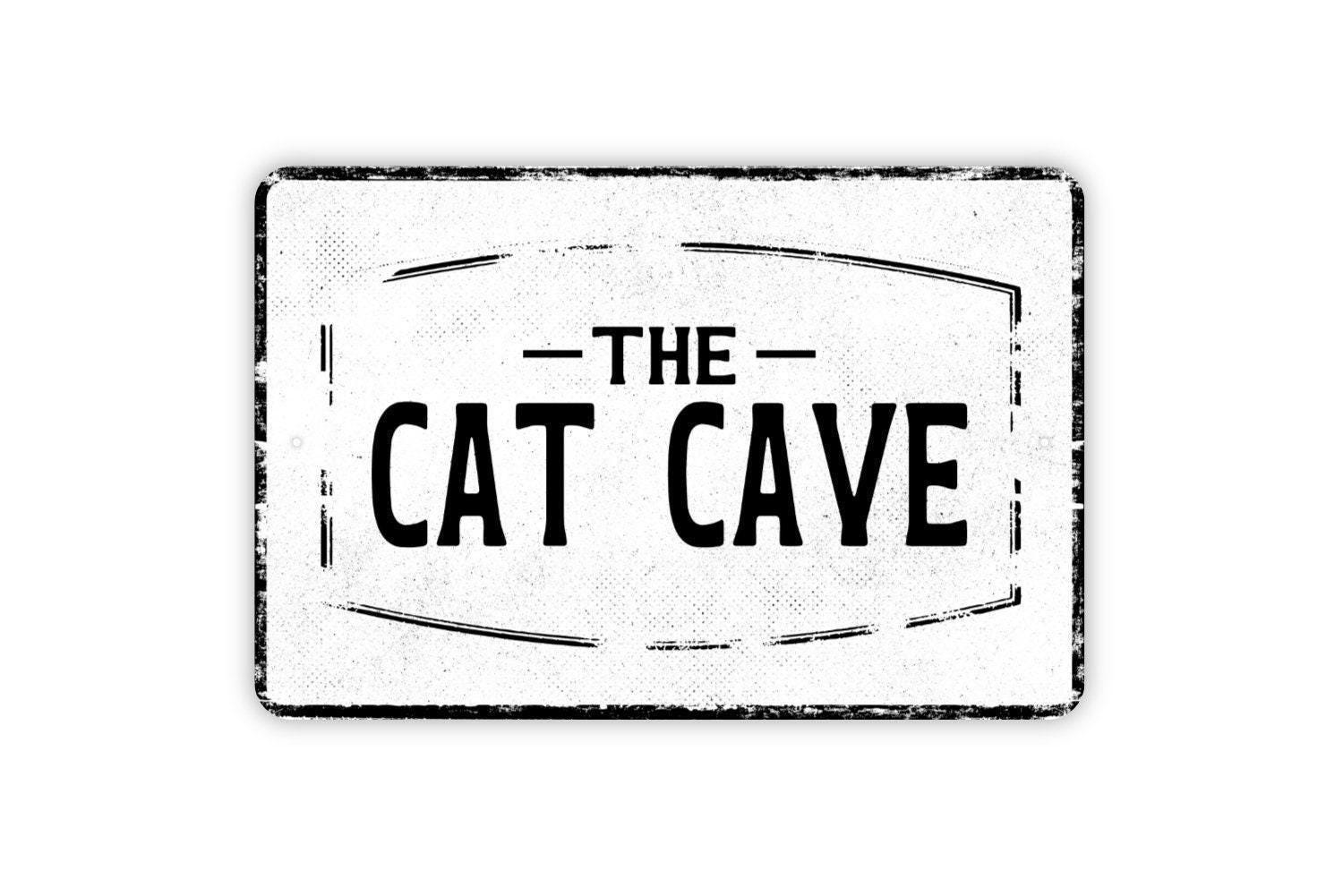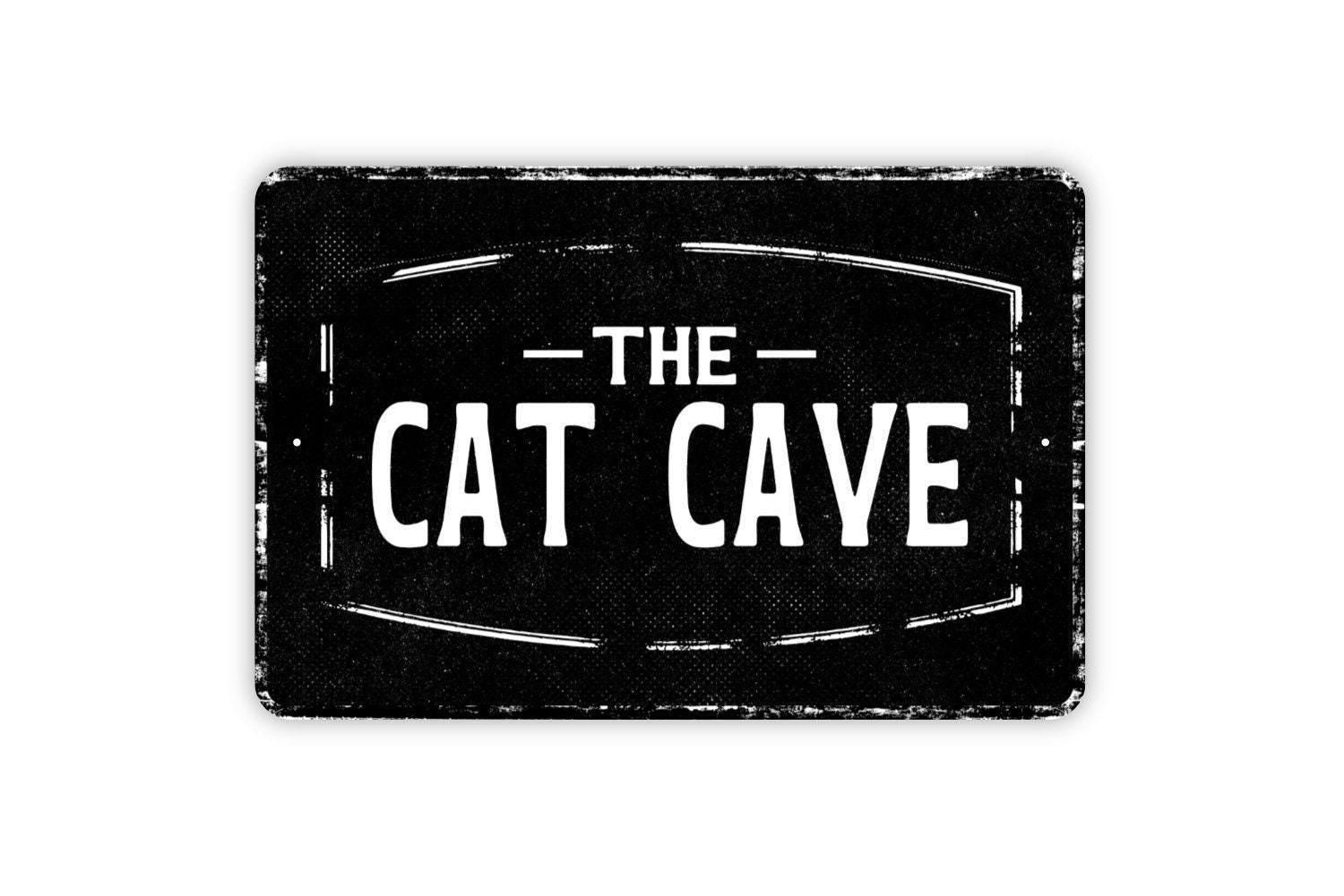 The Cat Cave Sign Metal Wall Art or Vinyl Sticker for Cat Lovers, Pet Room, Cattery, Shelter, Rustic Home Decor, Funny Feline Wall Sign