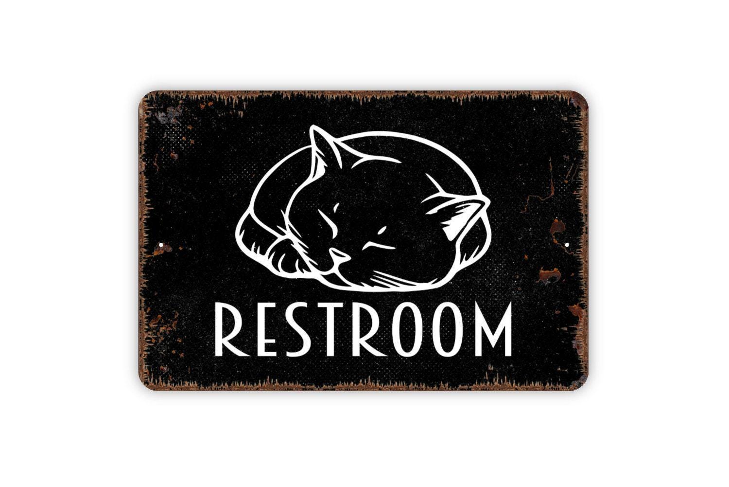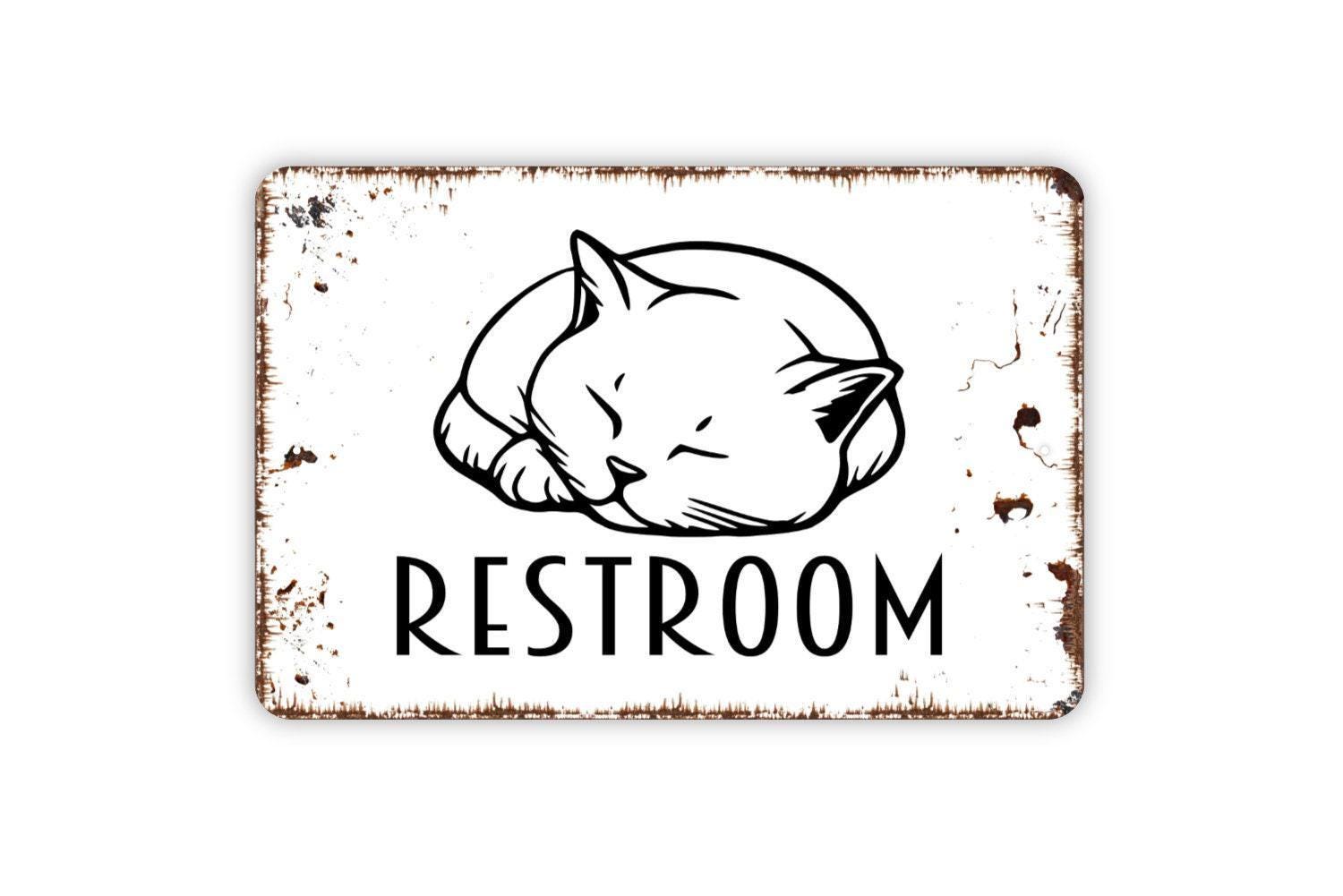 The Cat Restroom Sign - The Cat House Litter Box Funny Bathroom Metal Indoor or Outdoor Wall Art