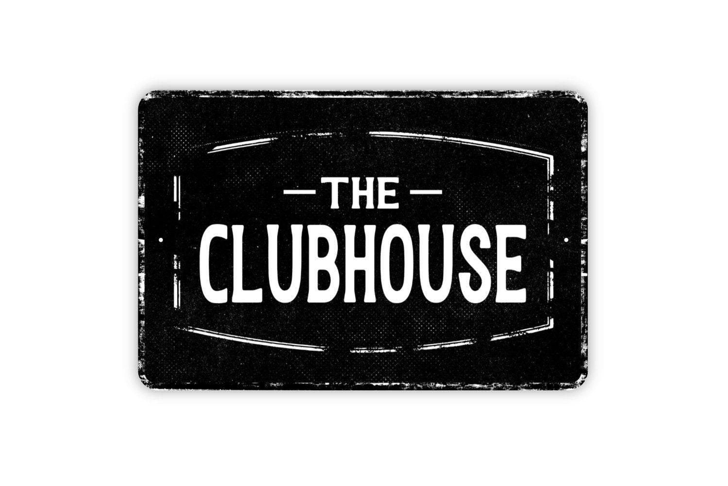 The Clubhouse Sign | Custom Clubhouse Sign for Neighborhood, Backyard, or Golf Course | Rustic Metal Sign or Vinyl Sticker in Multiple Sizes