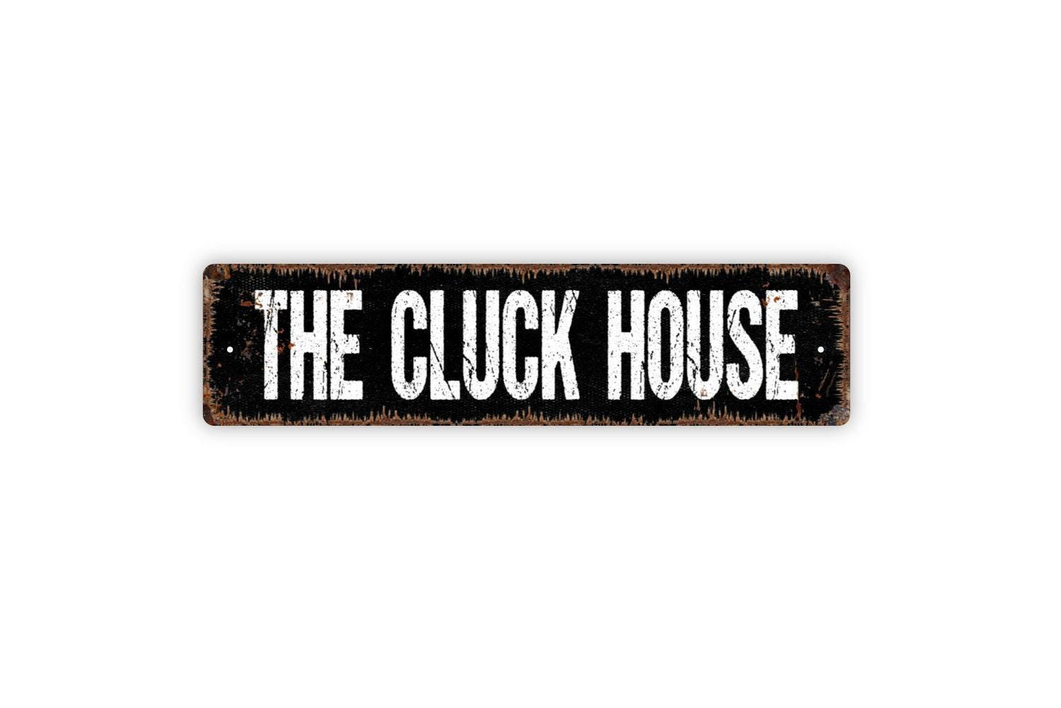 The Cluck House Sign - Chicken Hen Coop Vinyl Sticker Or Metal Street Sign or Door Name Plate Plaque