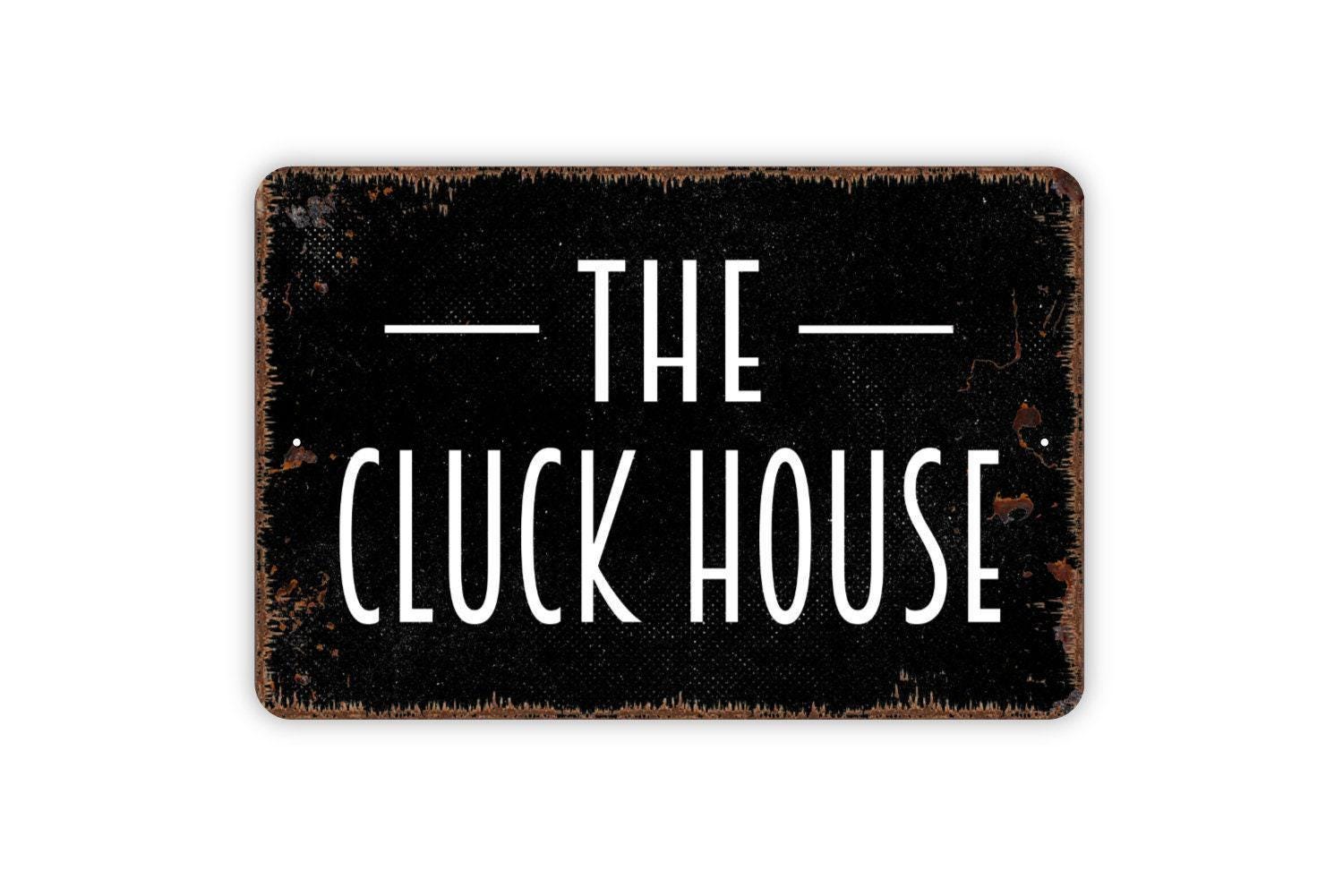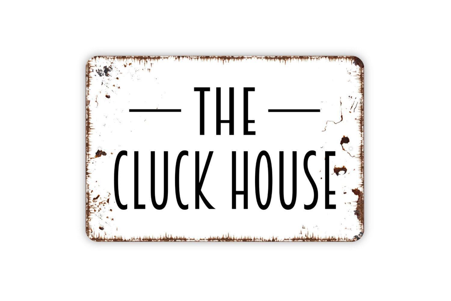 The Cluck House Sign | Funny Rustic Farmhouse Wall Sign for Chicken Coop, Barn, or Homestead | Metal Sign or Vinyl Sticker Hen House
