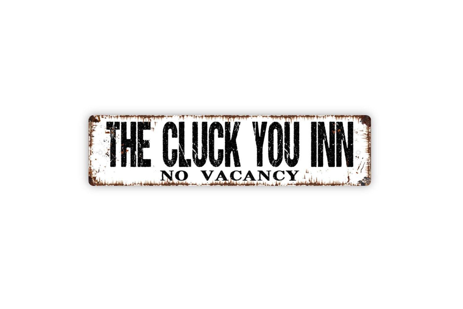 The Cluck You Inn Sign | Funny Chicken Coop Wall Decor | Metal Sign or Vinyl Sticker for Farms, Barns, Backyards, or Chicken Lovers