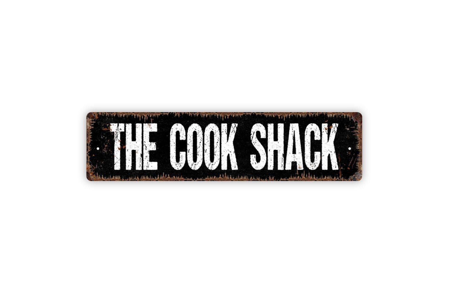 The Cook Shack Sign | Rustic Kitchen Cabin Wall Decor | Metal Sign or Vinyl Sticker for Outdoor Cooking, BBQ, Patio, or Lodge