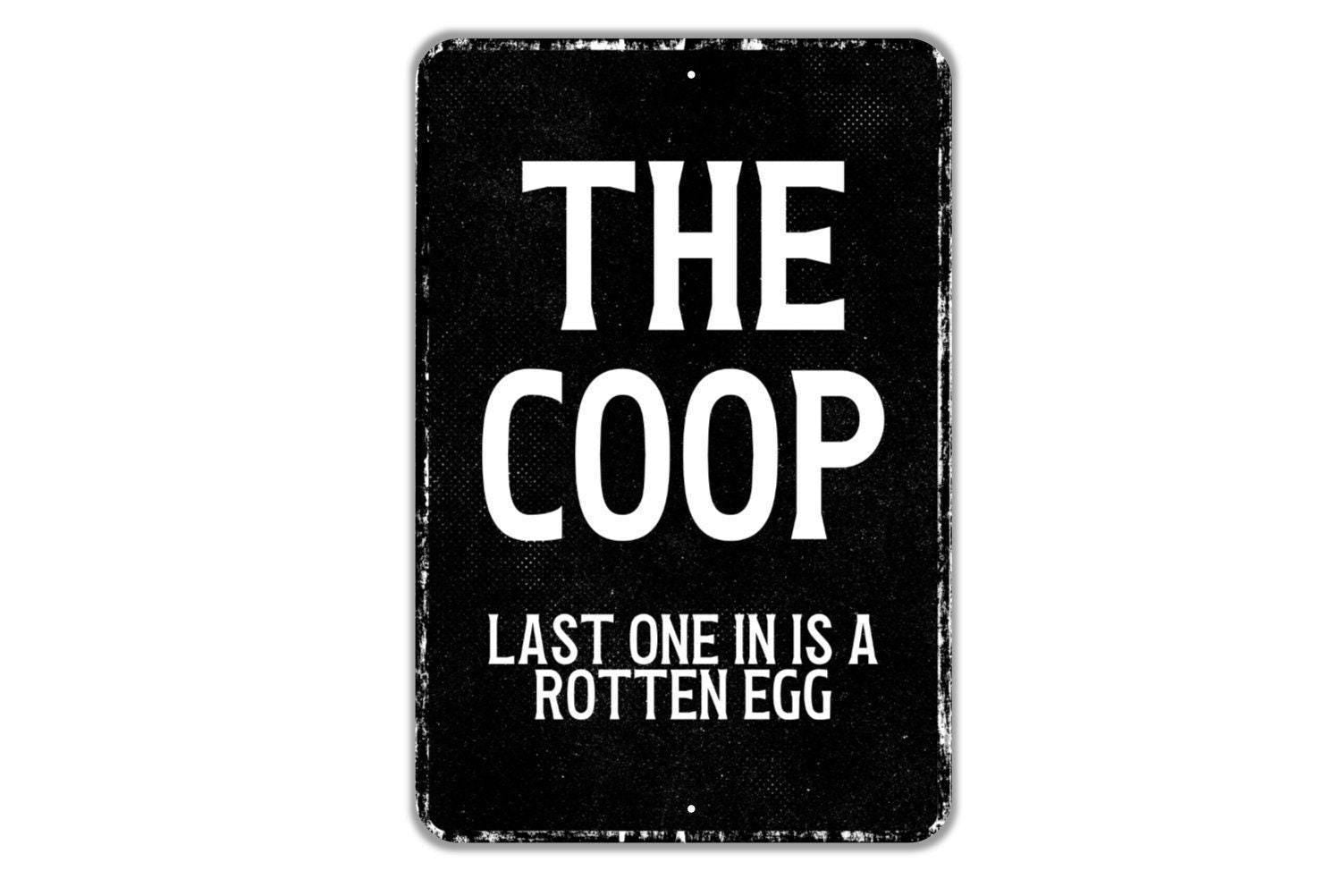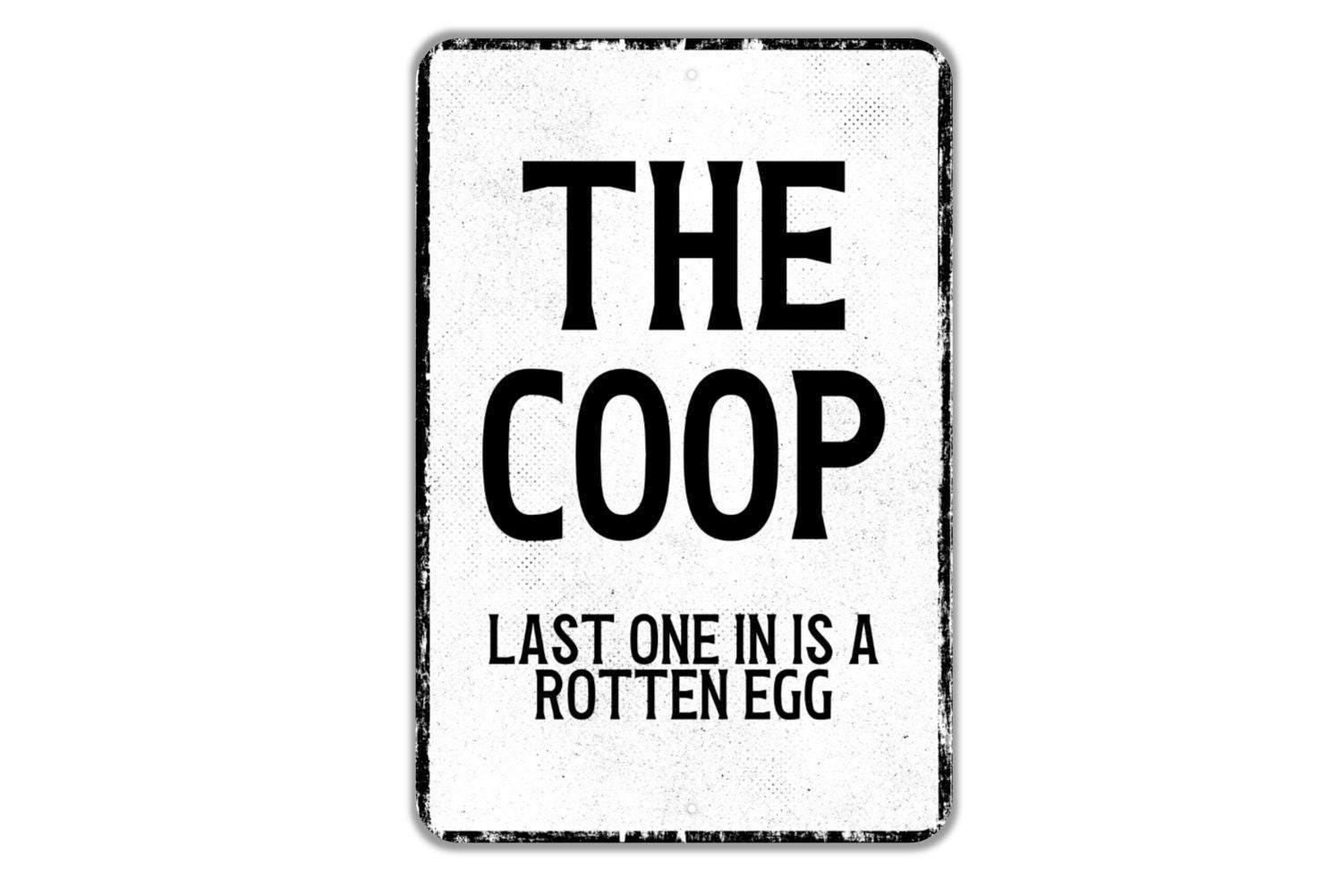The Coop Last One In Is A Rotten Egg Sign Metal Wall Art or Vinyl Sticker for Chicken Coop, Hen House, Farmhouse Kitchen, Funny Rustic Farm
