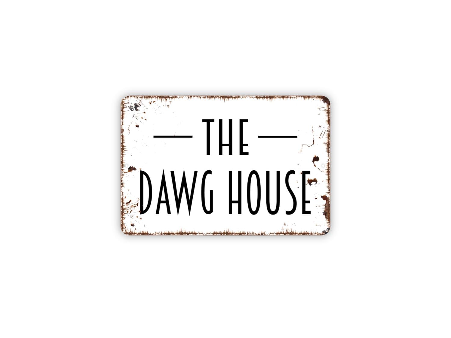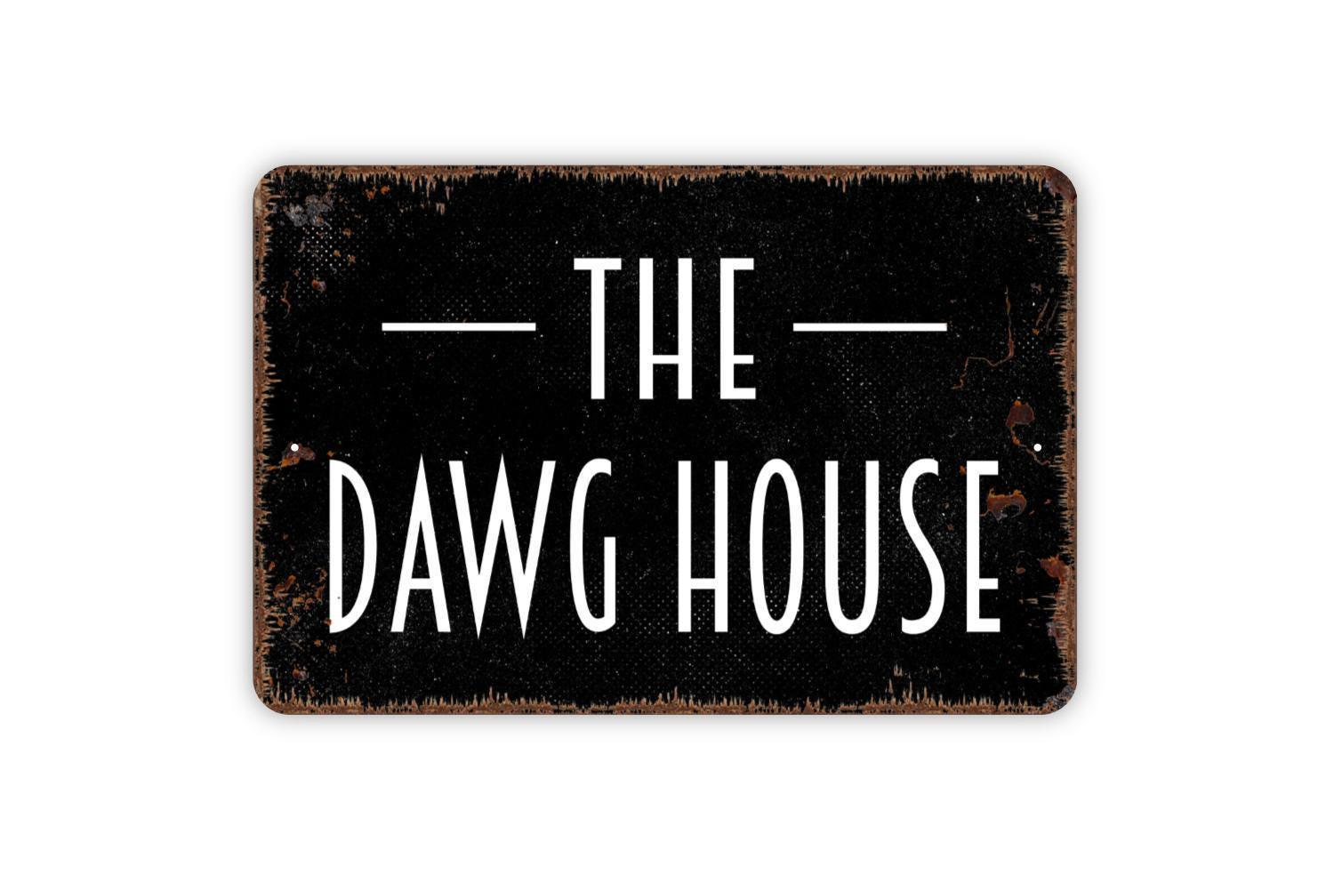 The Dawg House Sign | Funny Dog Lover Rustic Wall Decor | Metal Sign or Vinyl Sticker for Porch Yard Man Cave Bar