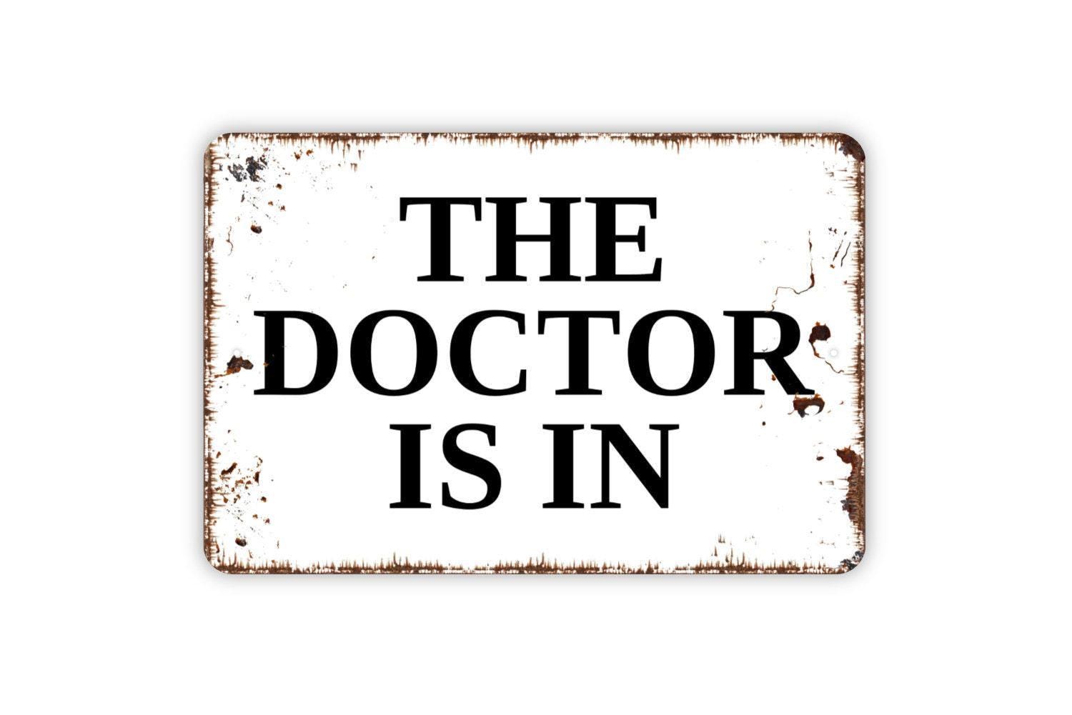 Welcome patients or clients with this fun “The Doctor Is In” sign, available as a metal sign or vinyl sticker. Perfect for medical offices, counseling spaces, clinics, and even home offices.