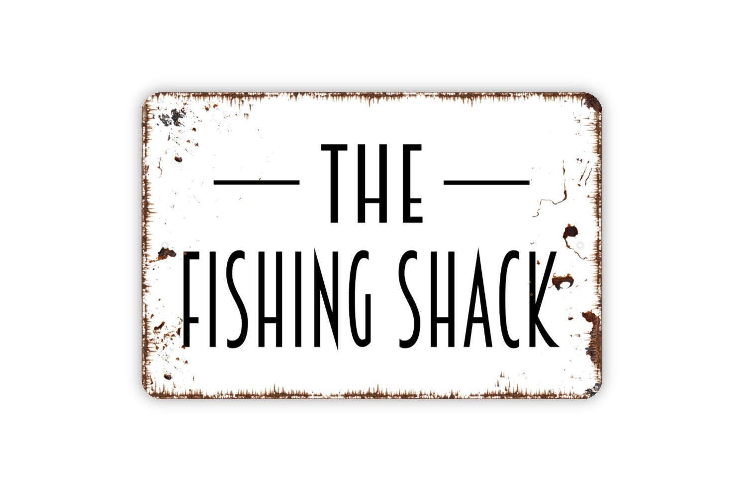 The Fishing Shack Sign | Rustic Cabin Lake House Decor | Metal Sign or Vinyl Sticker for Dock Lodge Porch Backyard