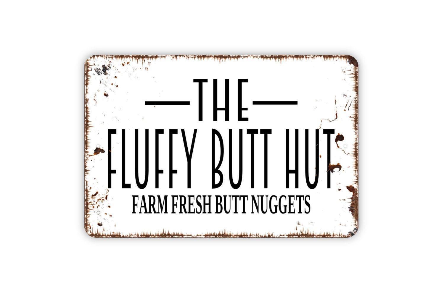 The Fluffy Butt Hut Farm Fresh Butt Nuggets Sign - Metal Chicken or Duck Wall Art