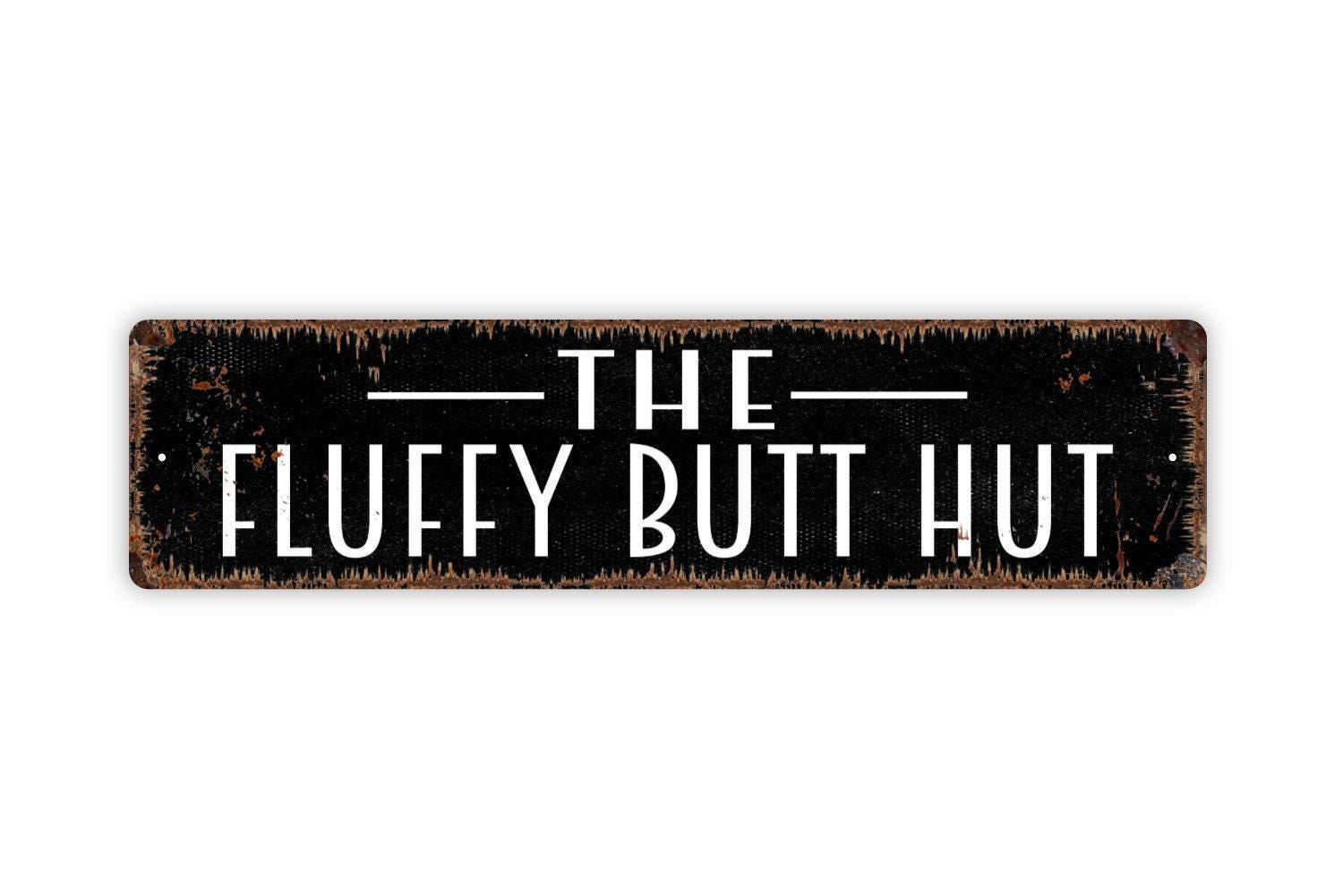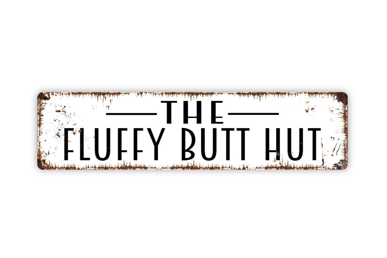 The Fluffy Butt Hut Sign - Chicken Rabbit Dog Cat Duck Vinyl Sticker Or Metal Street Sign or Door Name Plate Plaque