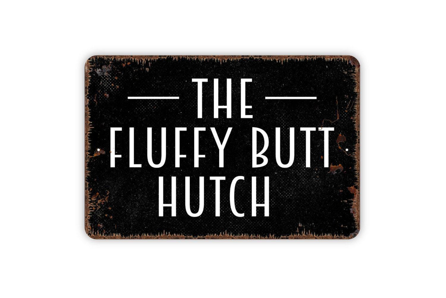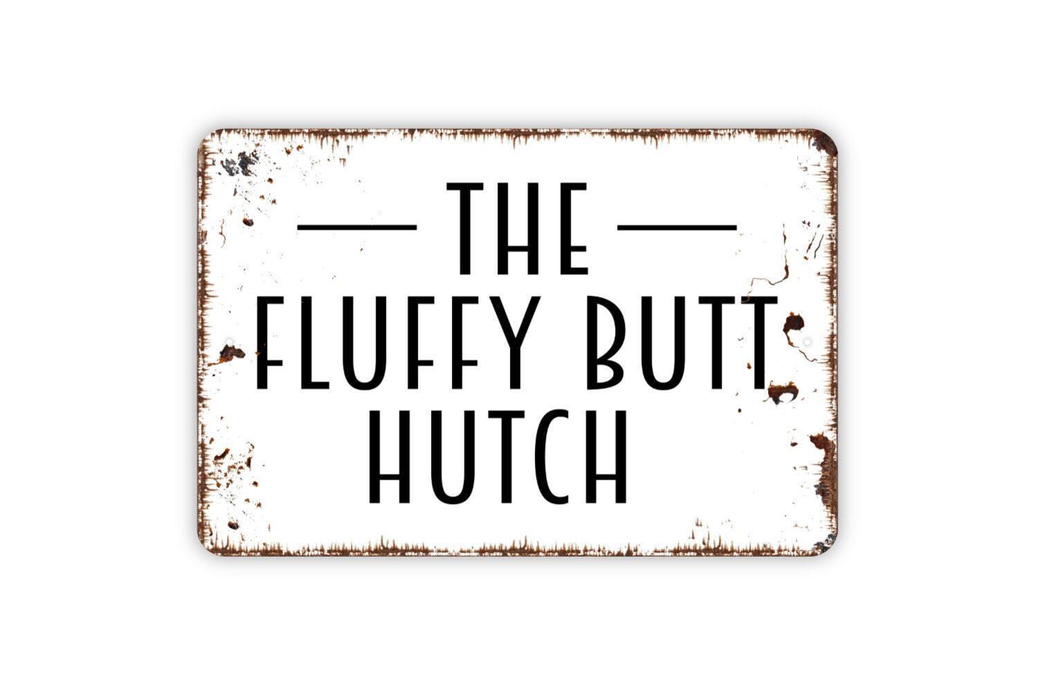 The Fluffy Butt Hutch Sign | Funny Rabbit Bunny Hutch Decor | Metal Sign or Vinyl Sticker for Barn Yard Farmhouse Pet Home