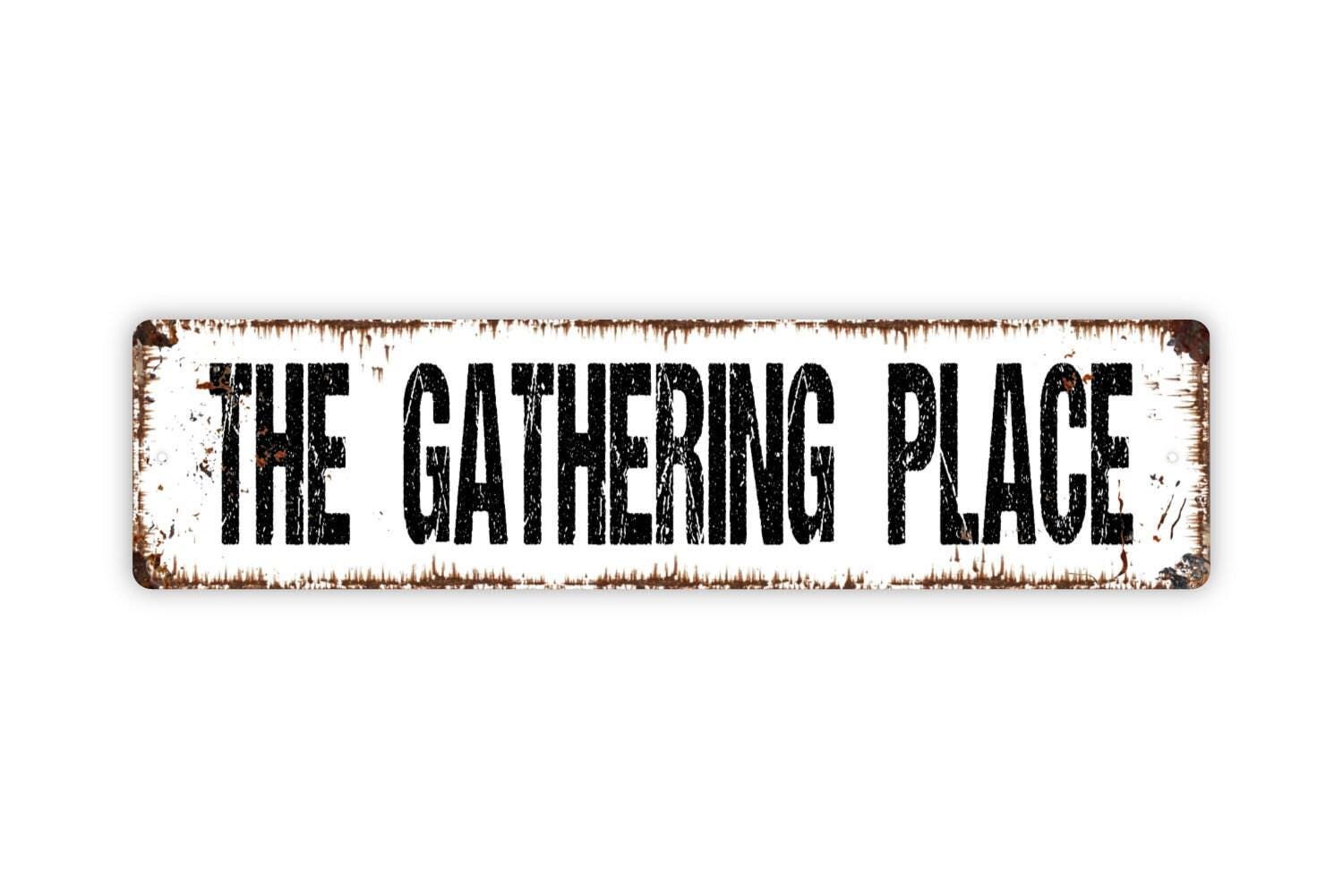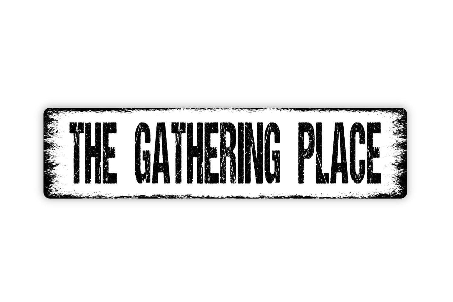 The Gathering Place Sign - Gather Here Friends Family Vinyl Sticker Or Street Metal Sign or Door Name Plate Plaque