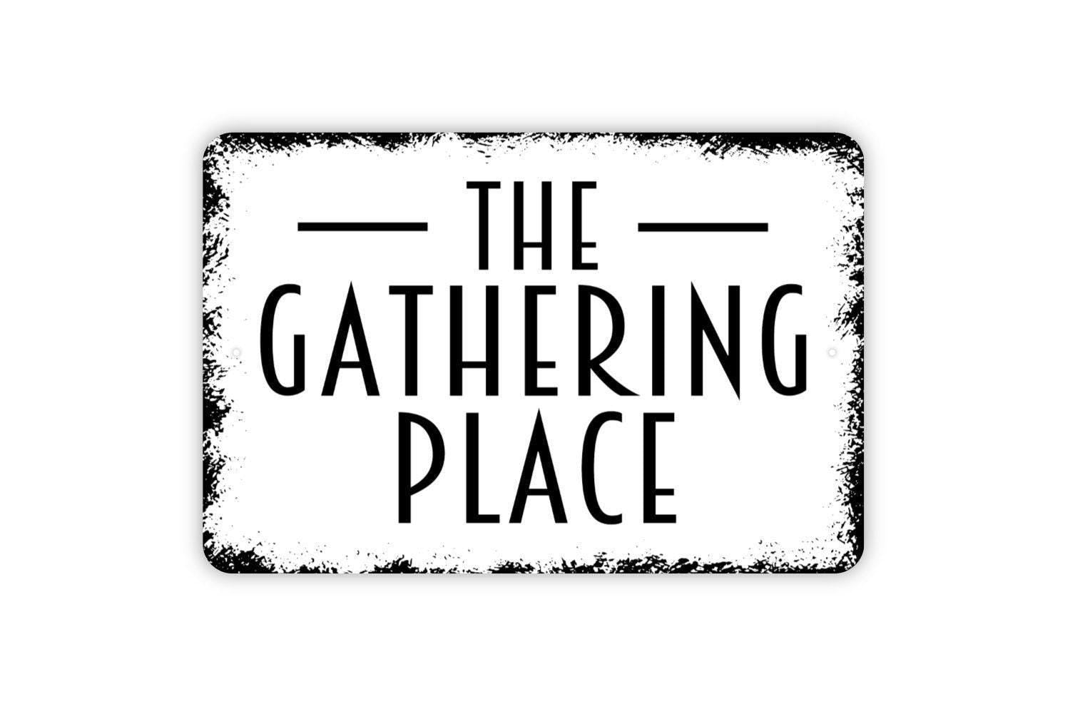 The Gathering Place Sign – Rustic Farmhouse Kitchen Dining Room Wall Decor – Family Home Living Room Sign – Metal Sign or Sticker