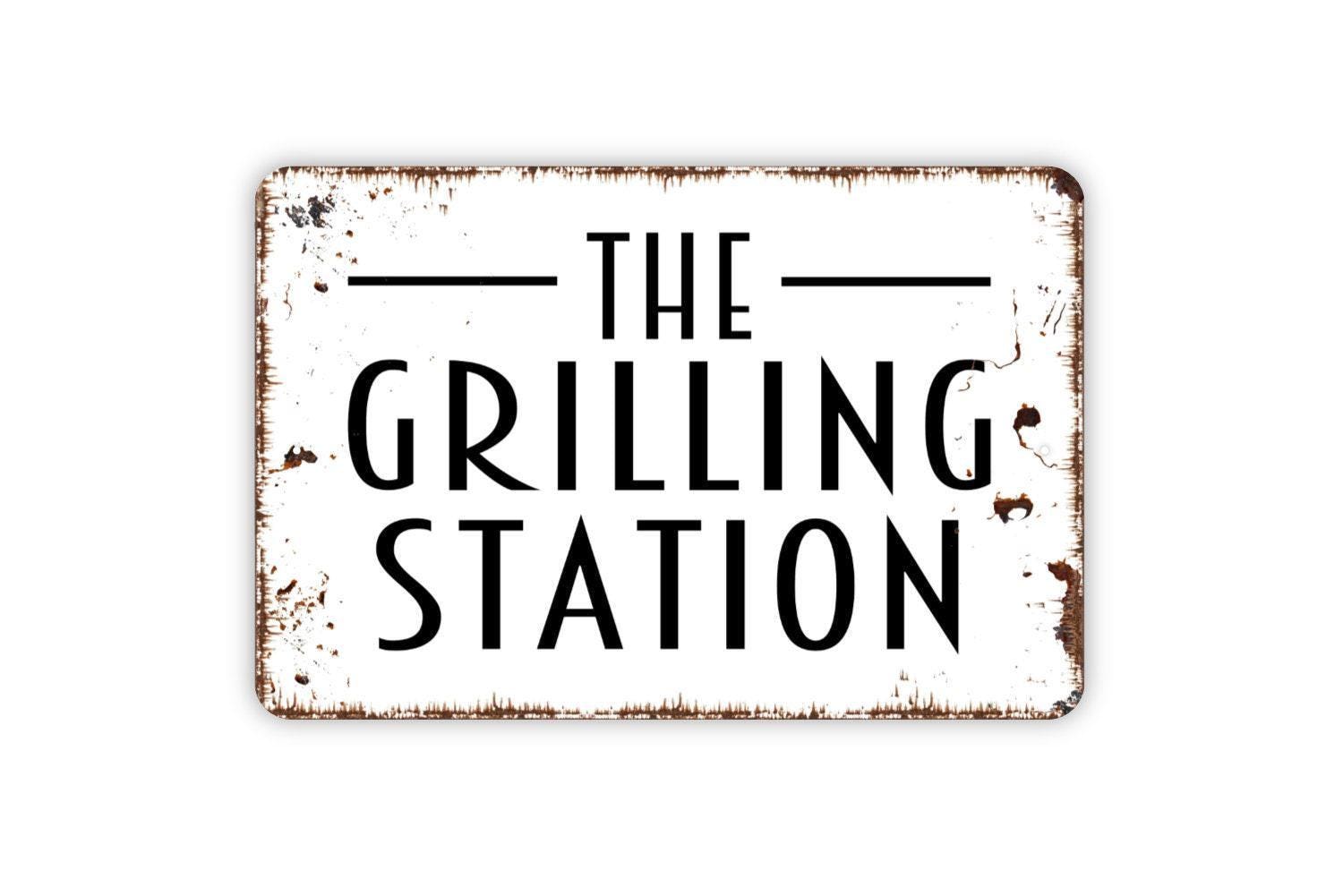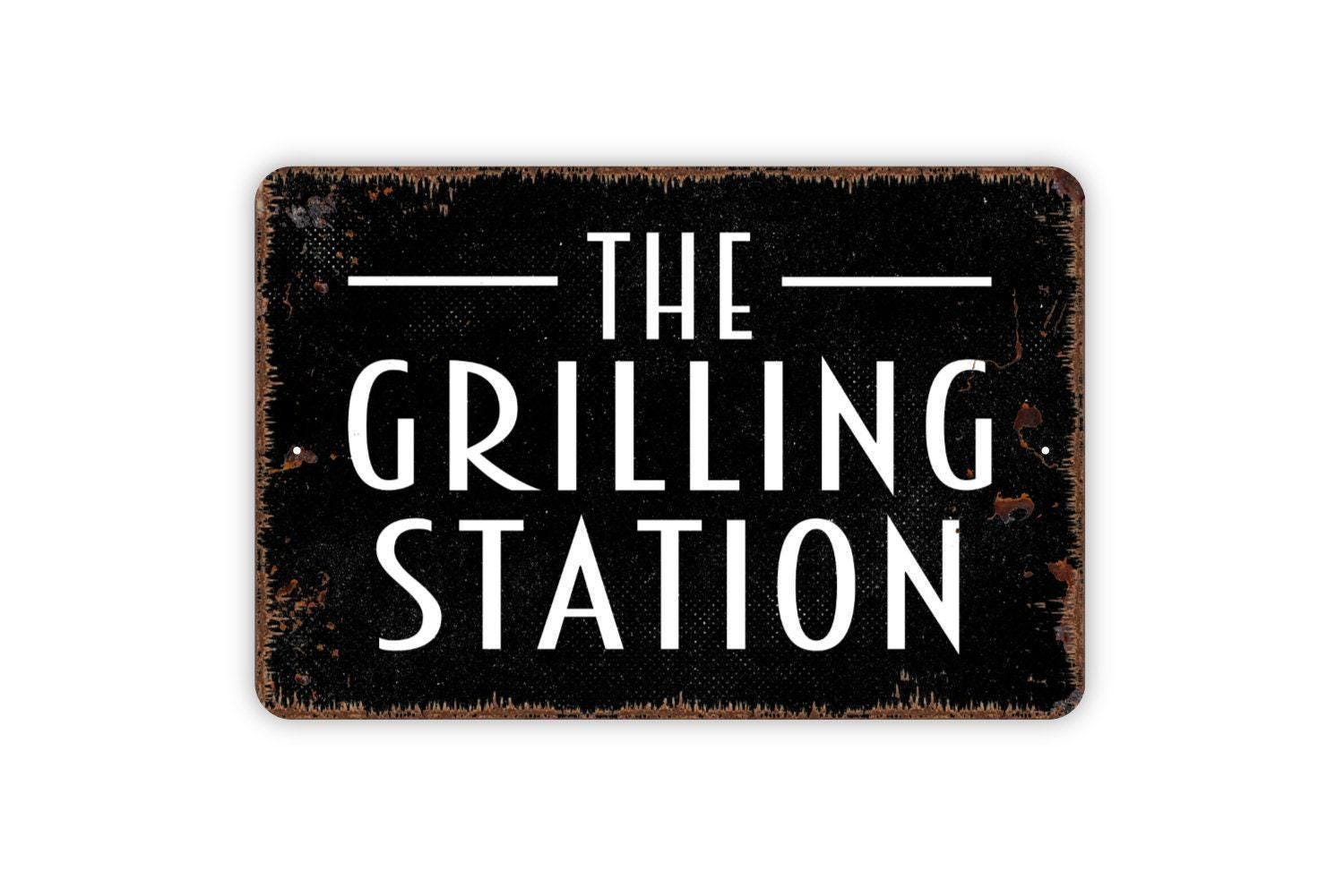 The Grilling Station Sign - Grill BBQ Barbecue Smoke Shack Metal Sign Grilling Notice Sign