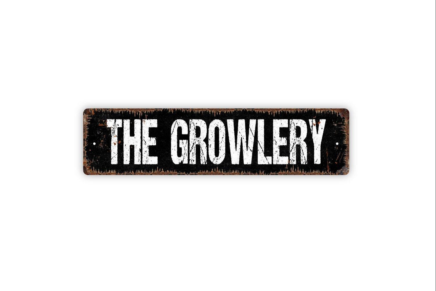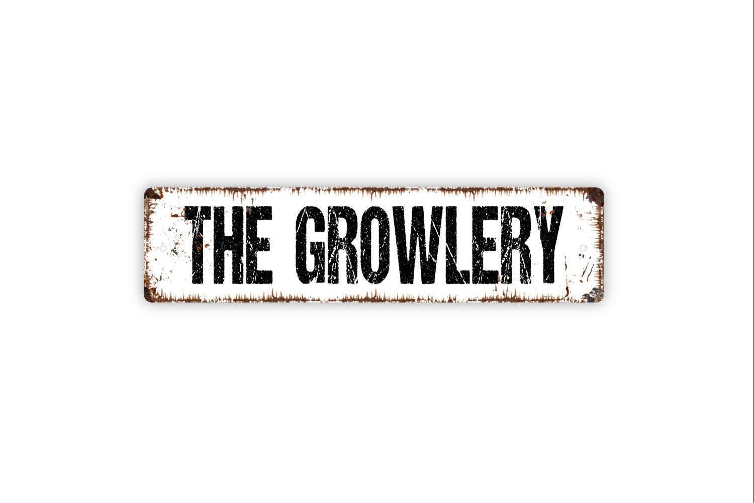 The Growlery Sign - Man Cave Garage Hobby Room Storage Shed Workshop Vinyl Sticker Or Street Metal Sign or Door Name Plate Plaque