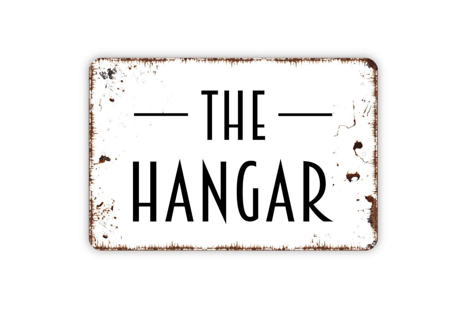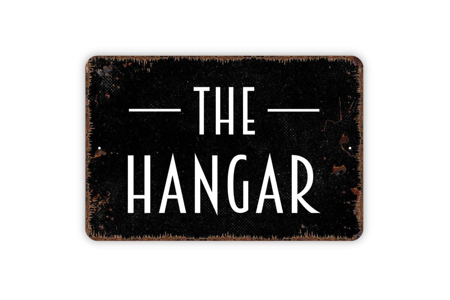 The Hangar Sign | Rustic Aviation Airplane Pilot Wall Decor | Metal Sign or Vinyl Sticker for Garage Man Cave Bar Office