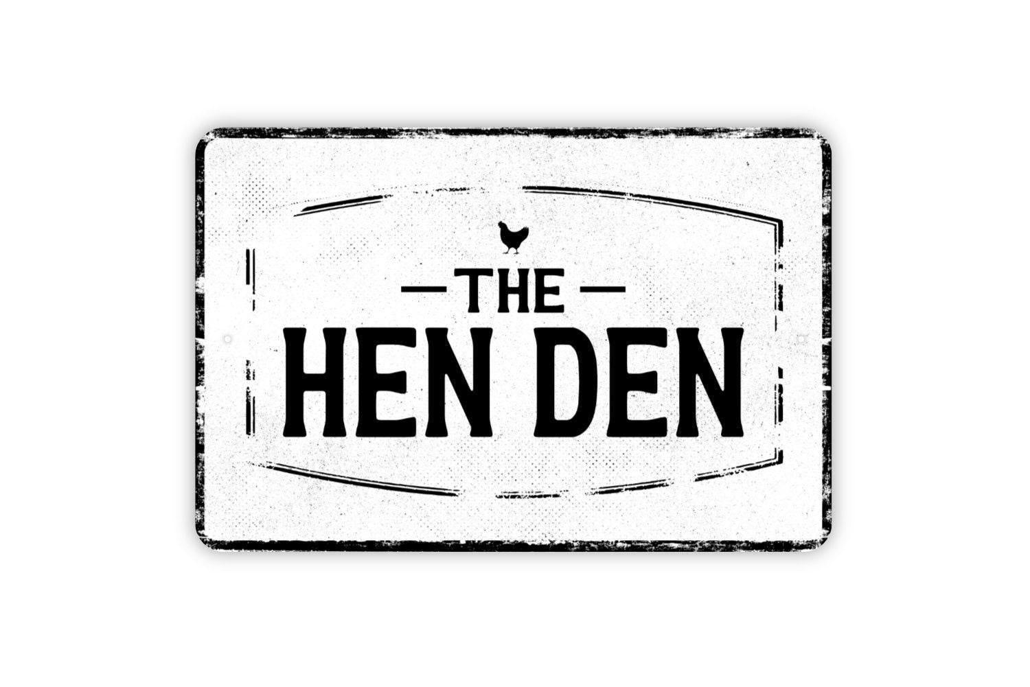The Hen Den Sign | Farmhouse Chicken Coop Decor | Rustic Hen House Wall Sign | Metal Sign or Vinyl Sticker | Farm Fresh Country Wall Art