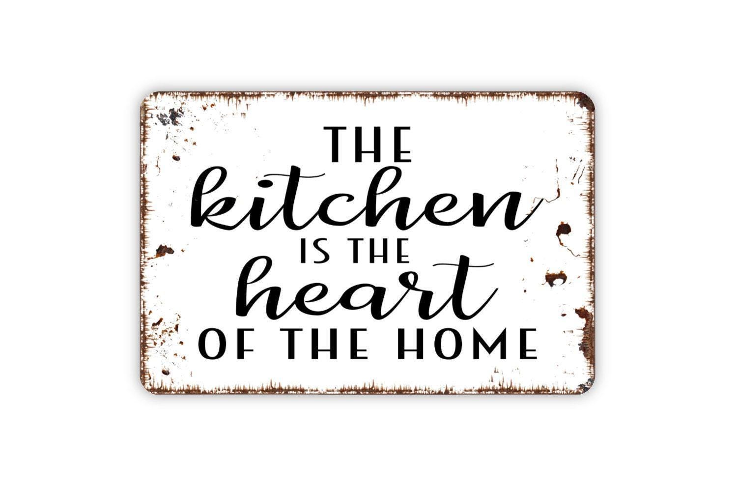 The Kitchen Is The Heart Of The Home Sign | Rustic Farmhouse Kitchen Wall Décor | Dining Room Quote Metal Sign or Vinyl Sticker Gift