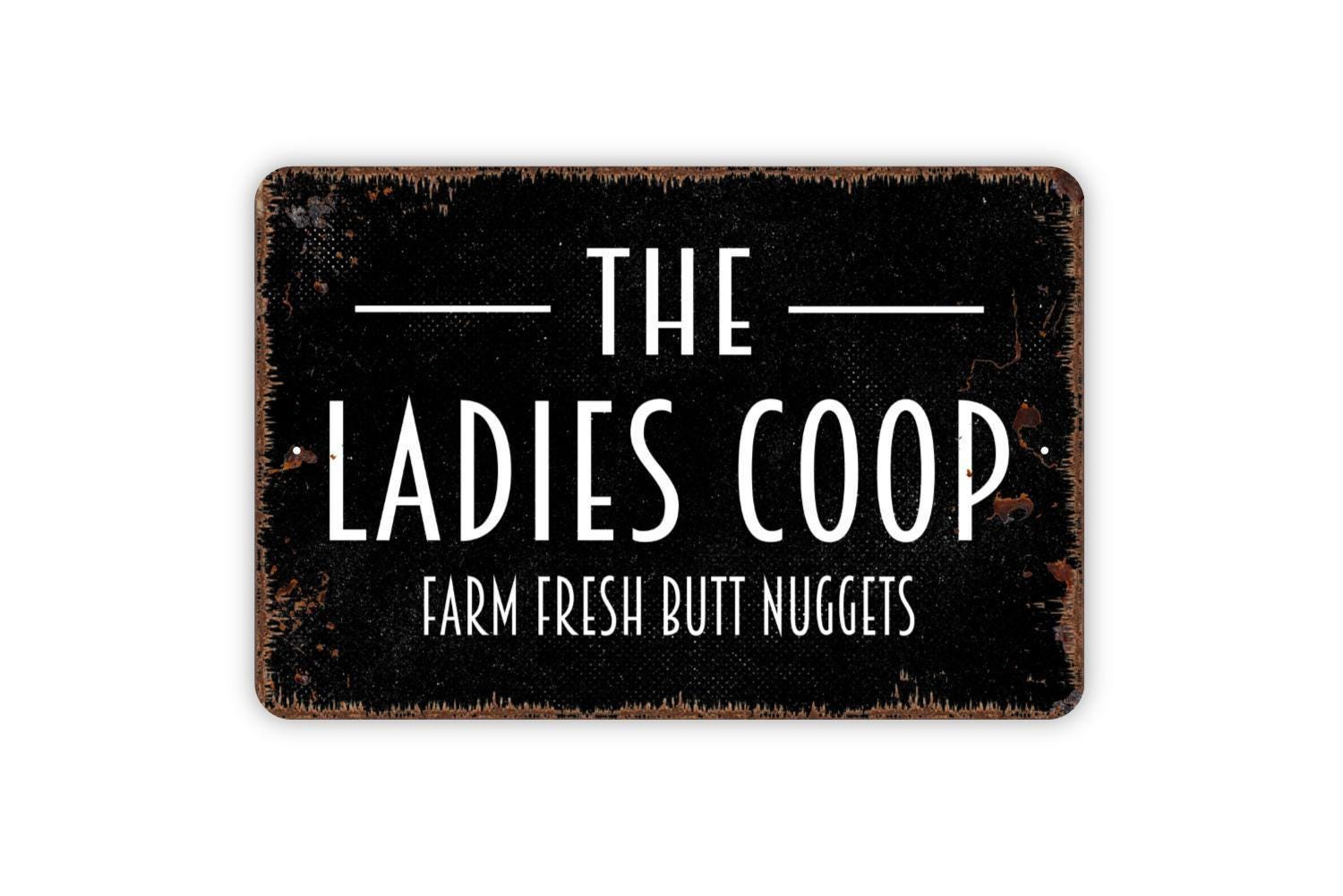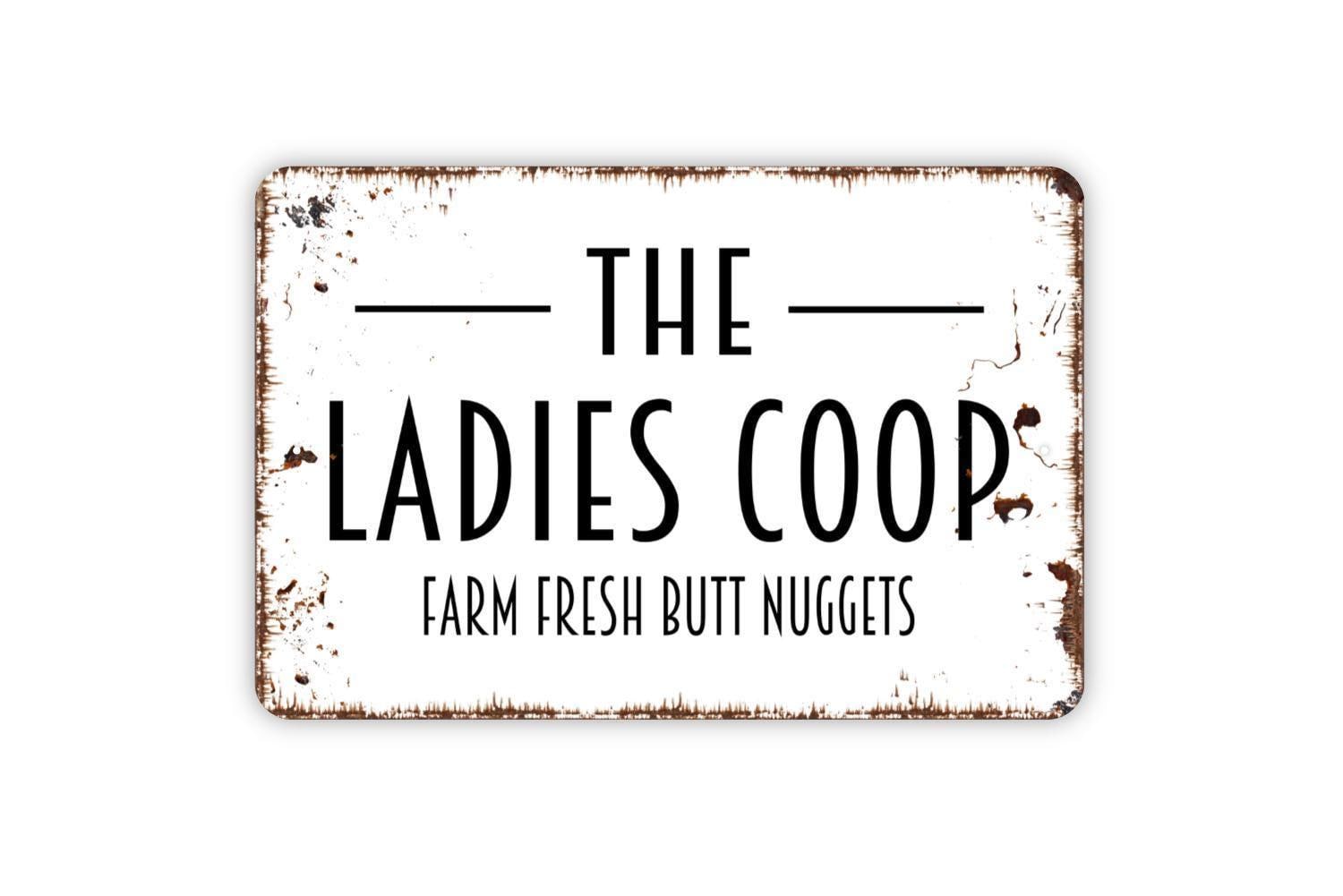 The Ladies Coop Farm Fresh Butt Nuggets Sign | Funny Chicken Coop Farmhouse Wall Decor | Metal Sign or Vinyl Sticker