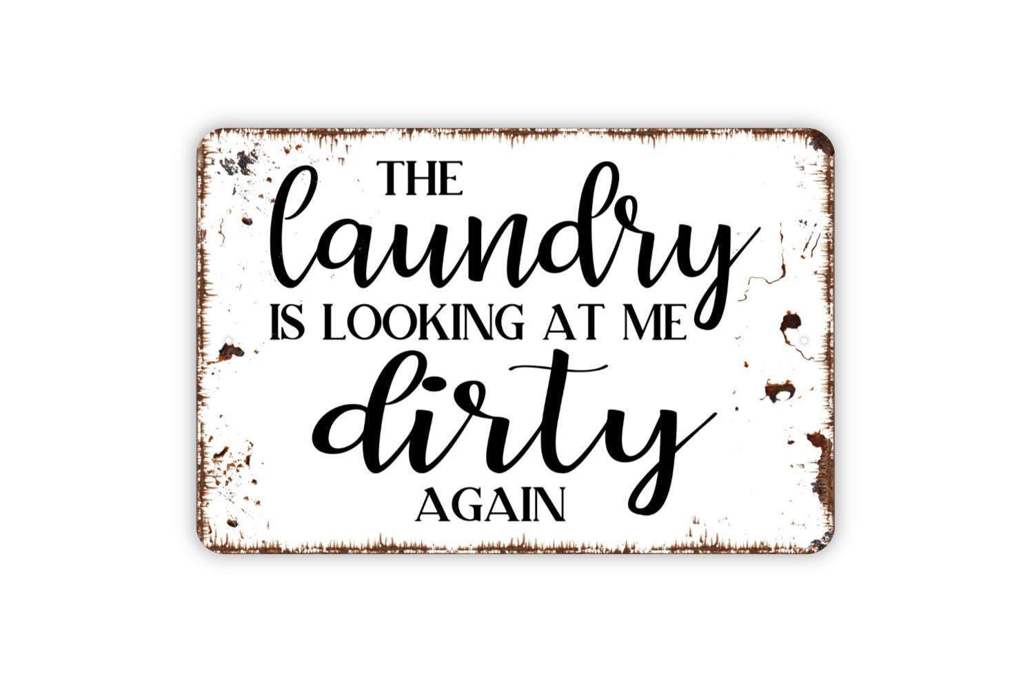 The Laundry Is Looking At Me Dirty Again Sign | Funny Farmhouse Wall Decor | Rustic Laundry Room Sign | Metal Sign or Vinyl Sticker