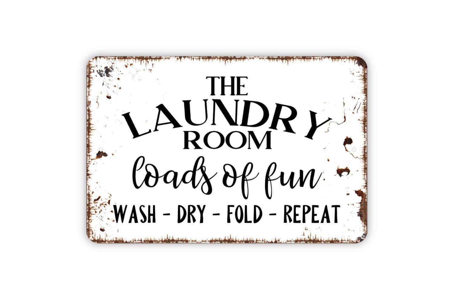 The Laundry Room Loads Of Fun Wash Dry Fold Repeat Sign - Funny Metal Wall Art