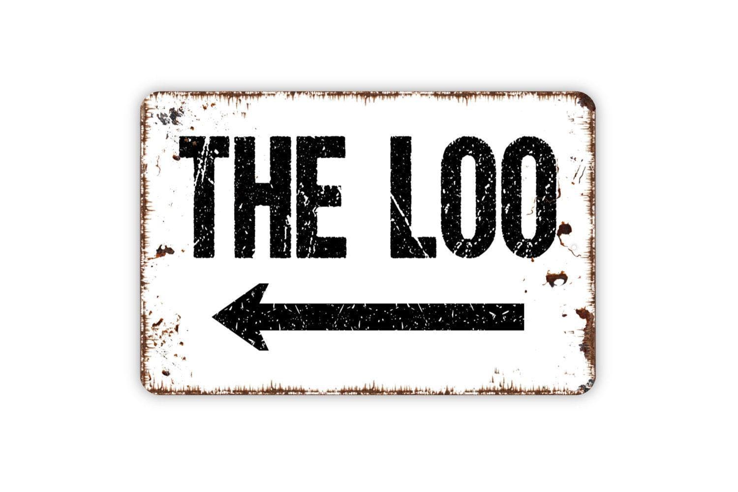 The Loo Sign with Right or Left Arrow Metal Sign, Restroom Farmhouse Style Wall Decor Modern Wall Metal Sign