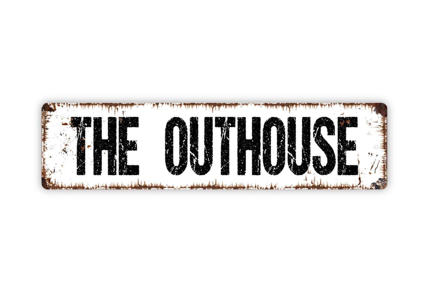 The Outhouse Sign - Restroom Bathroom Toilet Vinyl Sticker Or Street Metal Sign or Door Name Plate Plaque