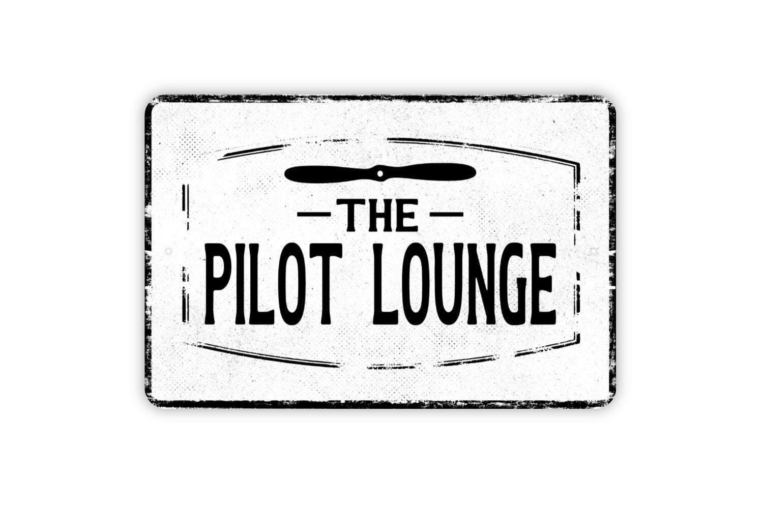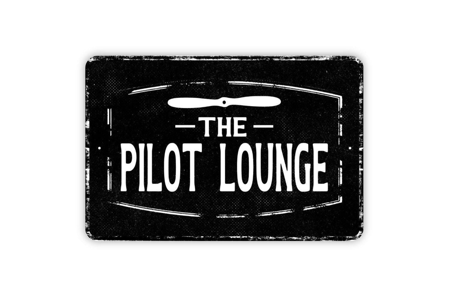 The Pilot Lounge Sign Metal Wall Art or Vinyl Sticker for Aviation Decor, Airport Lounge, Pilot Bar, Flight Enthusiast Gift, Airplane Sign