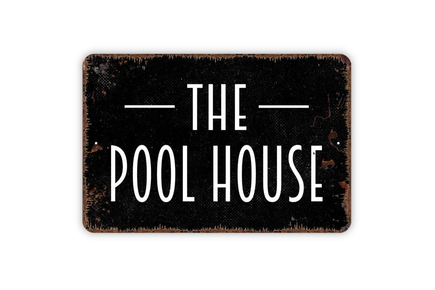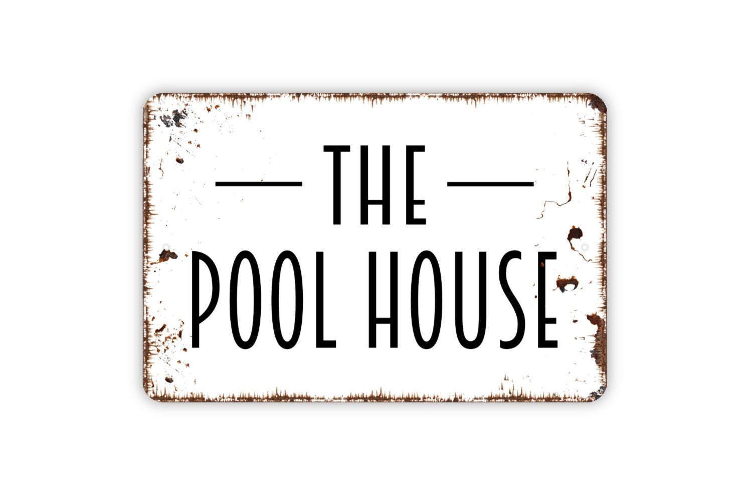 The Pool House Sign | Rustic Coastal Wall Decor | Beach House Swimming Pool Area Family Home Sign | Metal Sign or Vinyl Sticker