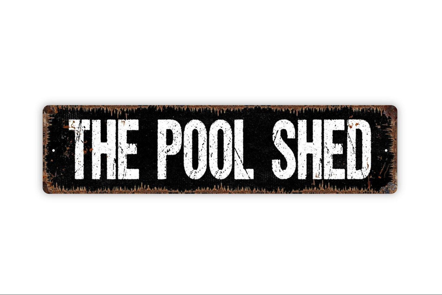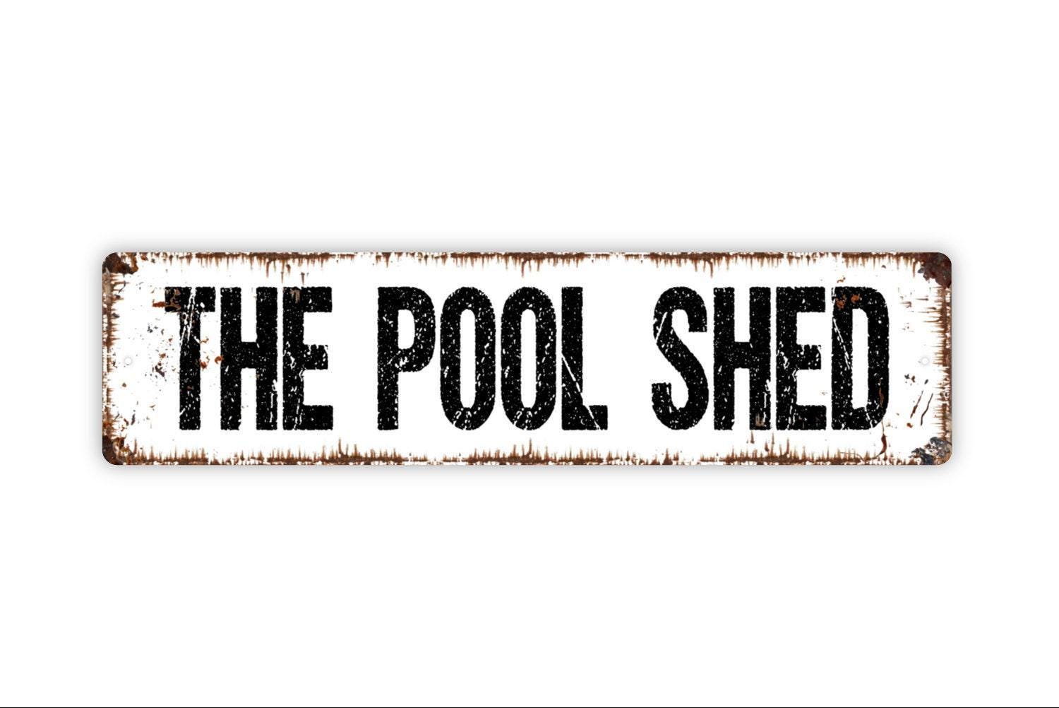 The Pool Shed Sign - Swimming Pool Vinyl Sticker Or Street Metal Sign or Door Name Plate Plaque