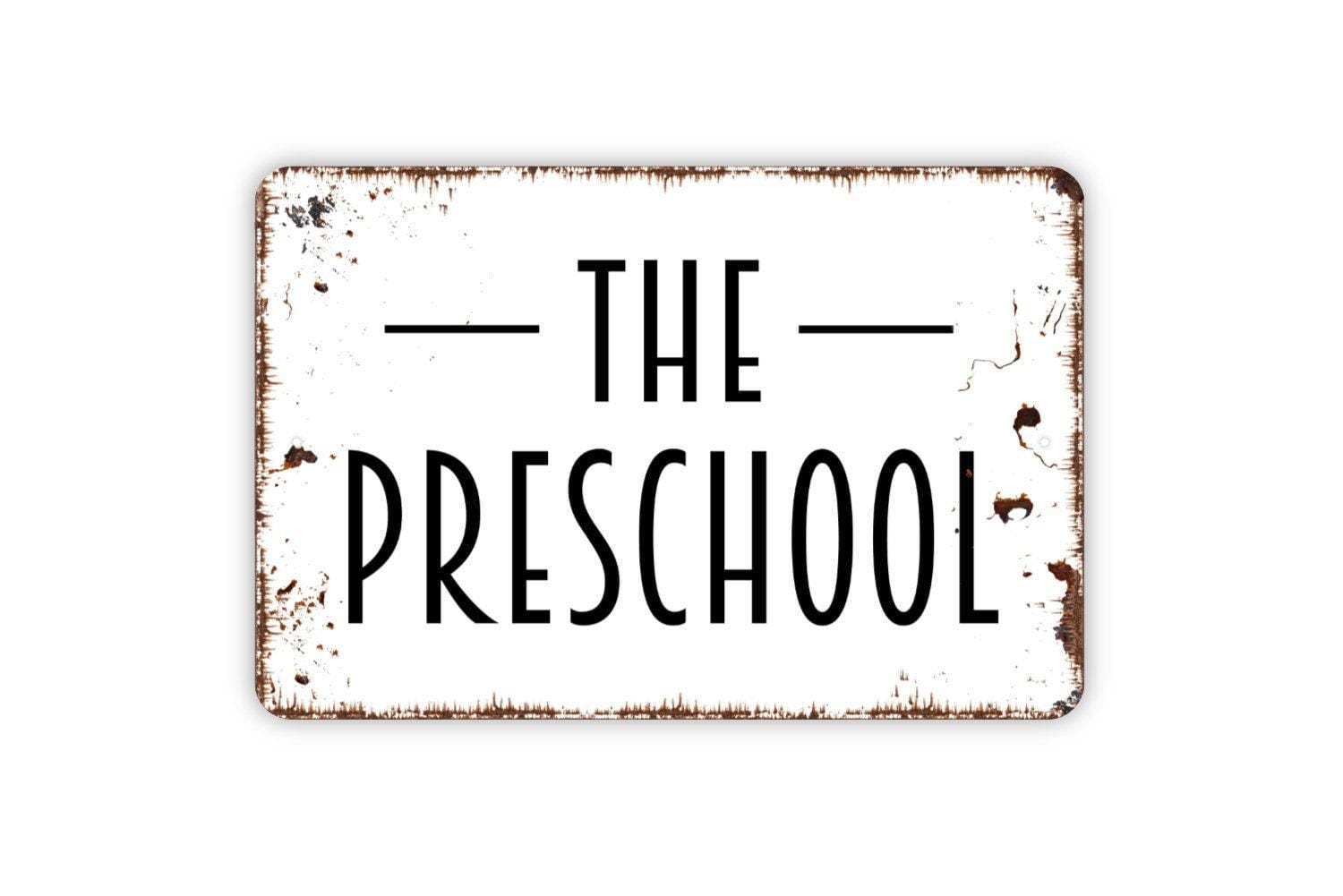 The Preschool Sign - Schoolhouse Pre-K Childcare Metal Wall Art Indoor Or Outdoor