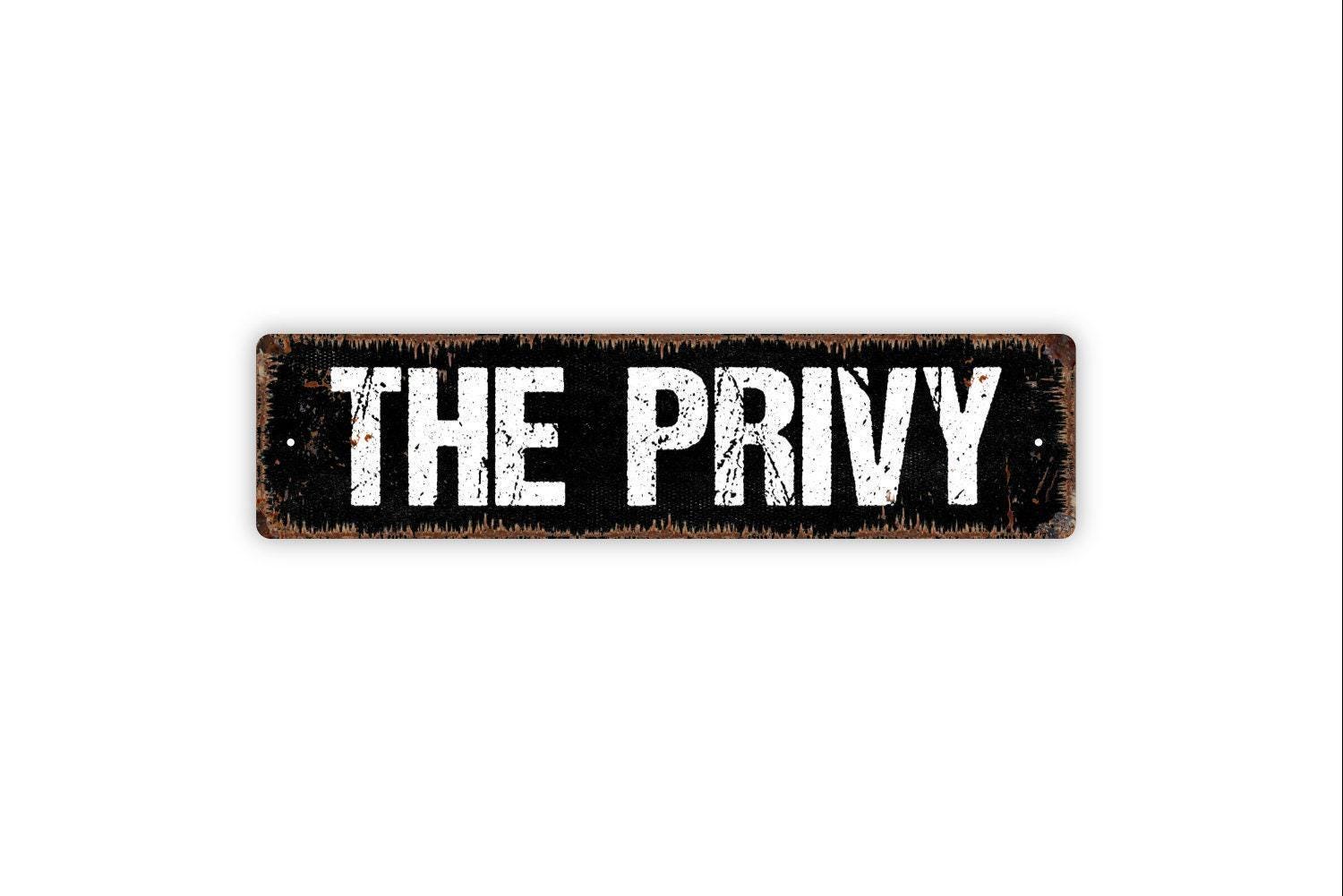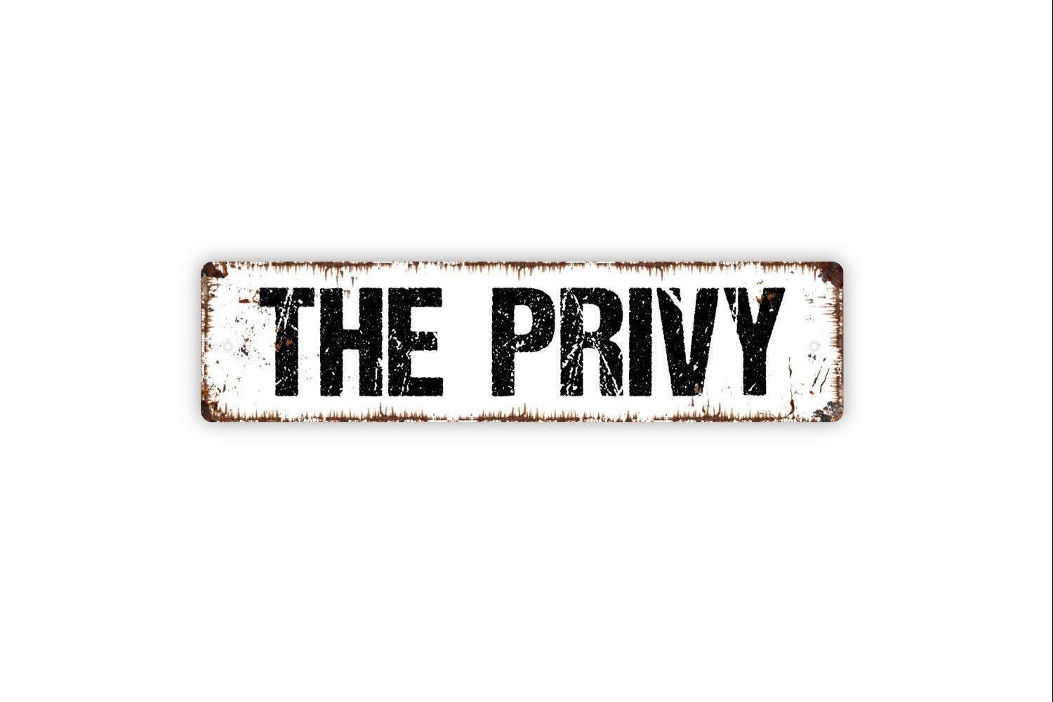 The Privy Sign - Bathroom Over The Toilet Funny Restroom Vinyl Sticker Or Street Metal Sign or Door Name Plate Plaque