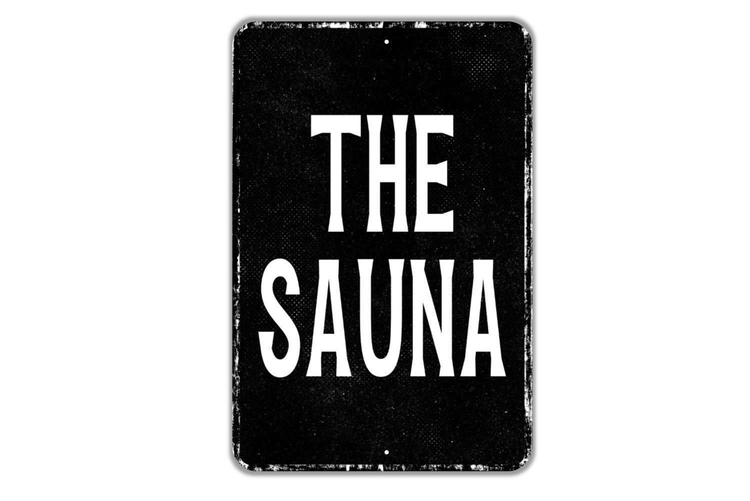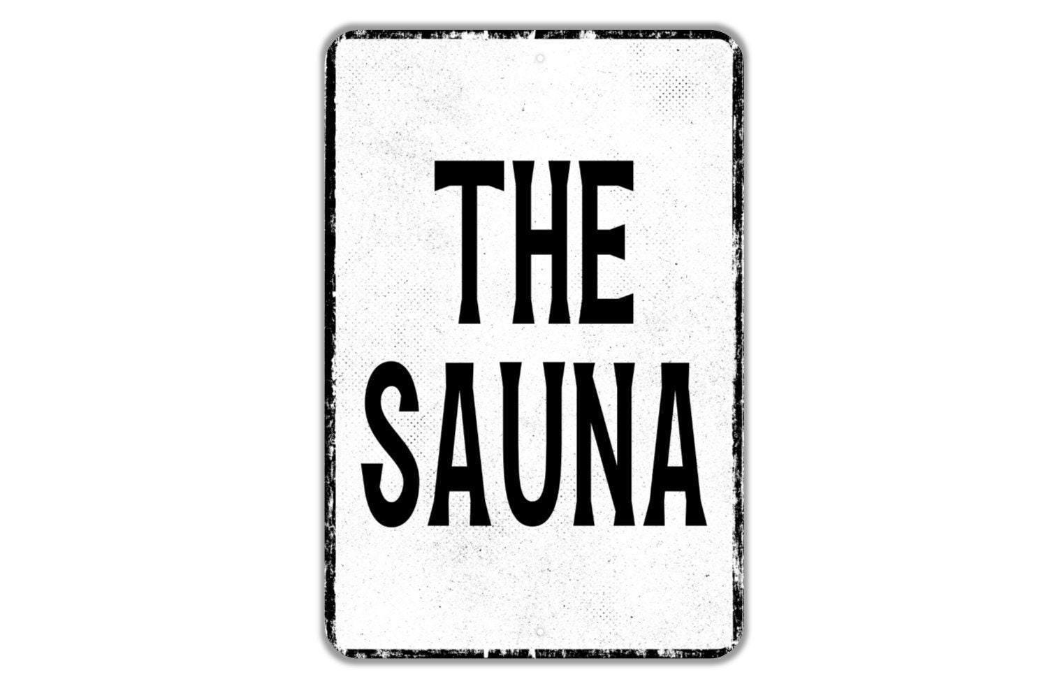 The Sauna Sign | Rustic Sauna Room Sign for Home, Cabin, Spa, or Gym | Metal Sign or Vinyl Sticker in Multiple Sizes | Business Sign