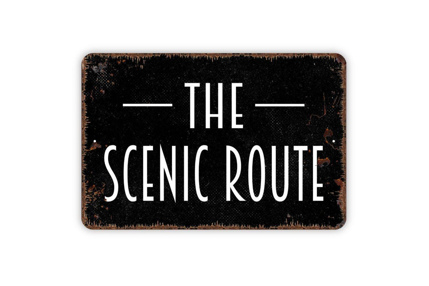 The Scenic Route Sign - Metal Sign, Farmhouse Contemporary Modern Wall Metal Sign