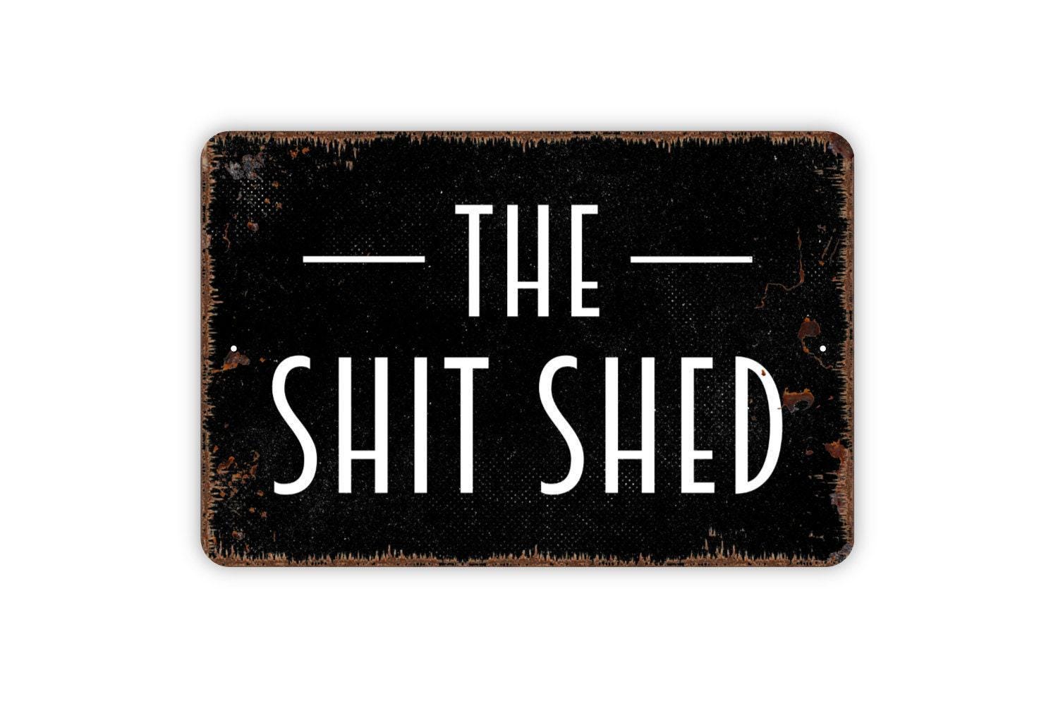 The Shit Shed Sign | Funny Shed or Outhouse Wall Sign | Rustic Farmhouse Metal Sign or Vinyl Sticker for Barn, Garage, Man Cave, or Yard