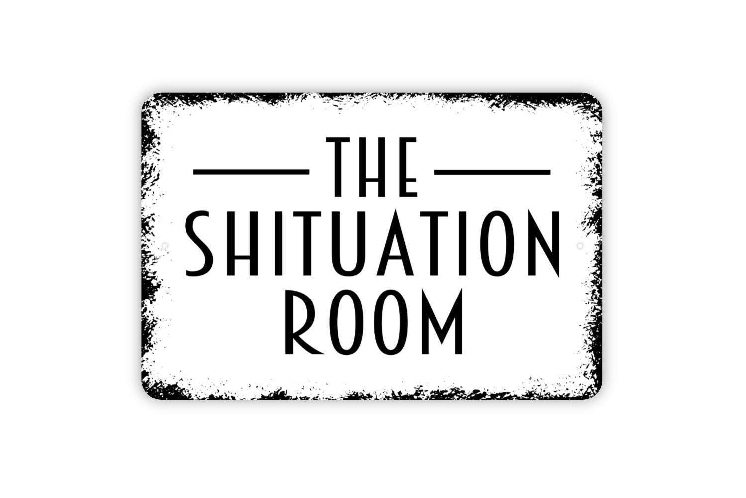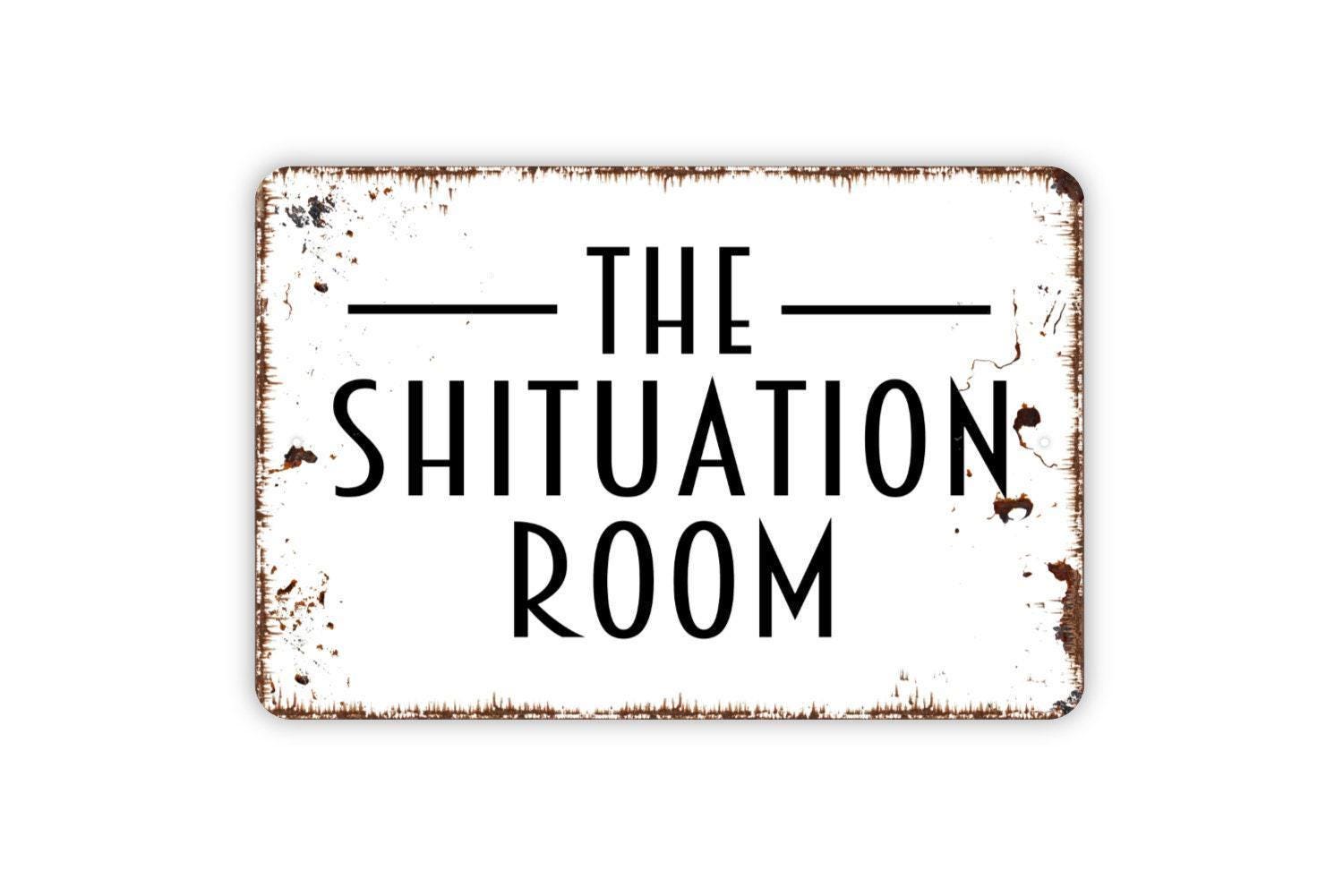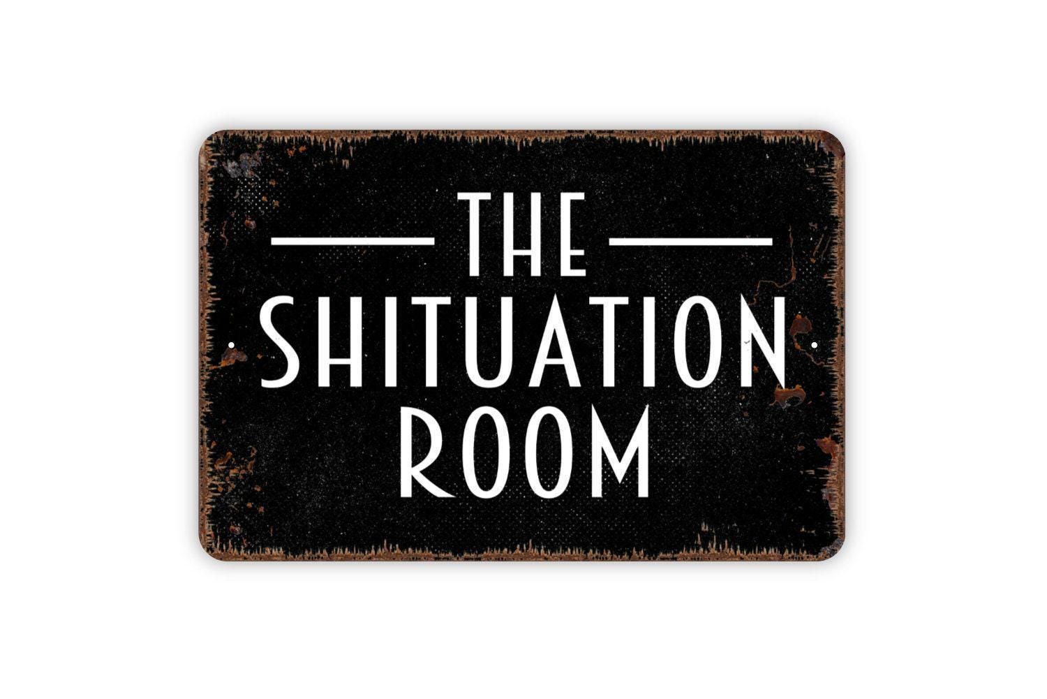 The Shituation Room Sign – Funny Bathroom Wall Decor – Guest Restroom Humor Sign – Rustic Toilet Wall Art – Metal Sign or Vinyl Sticker