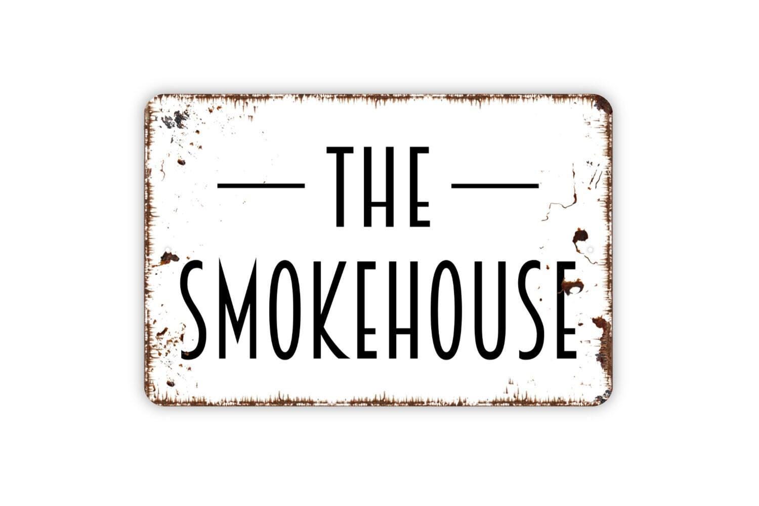 The Smokehouse Sign | BBQ Sign for Outdoor Kitchen or Grill | Rustic Cabin Metal Sign or Vinyl Sticker | Personalized Barbecue Decor