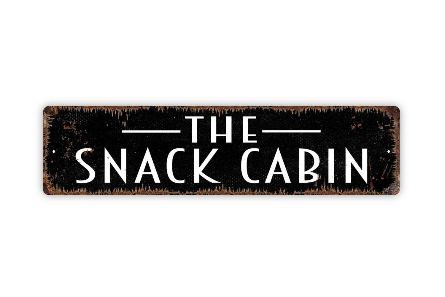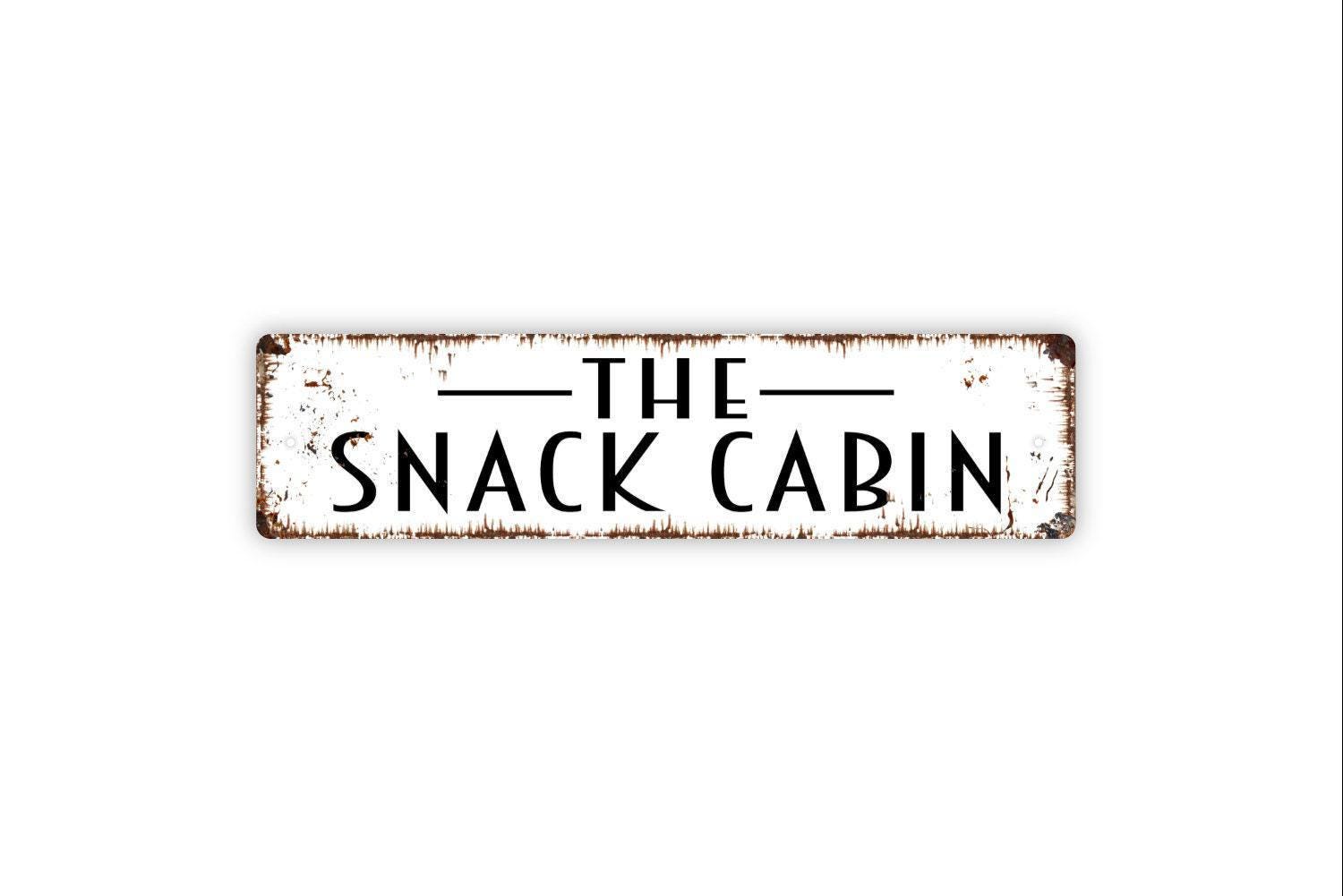The Snack Cabin Sign Metal or Vinyl Sticker | Rustic Cabin Decor | Funny Kitchen Sign | Lake House Wall Art | Camping Food Gift Sticker