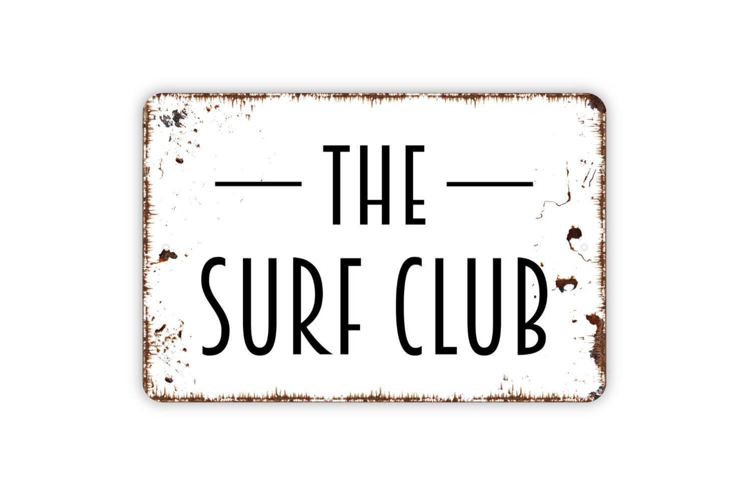 The Surf Club Sign – Beach House Wall Decor – Coastal Surfboard Sign – Ocean Themed Wall Art – Metal Sign or Vinyl Sticker