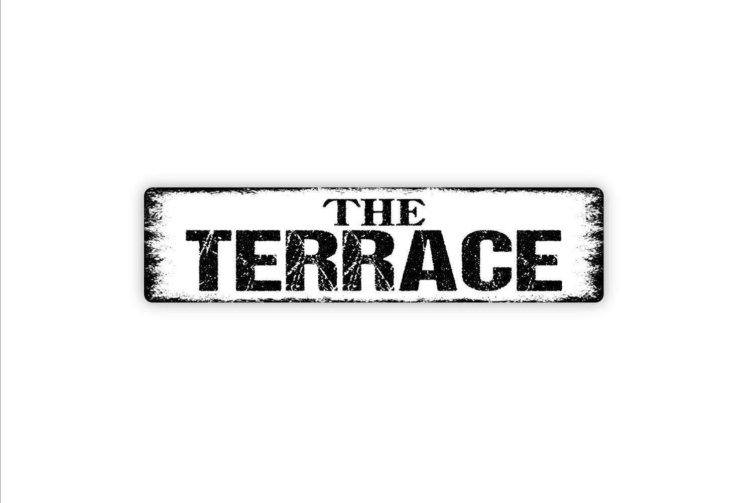 The Terrace Sign – Patio Garden Outdoor Dining Wall Decor – Rustic Farmhouse Porch Yard Home Sign – Metal Sign or Sticker