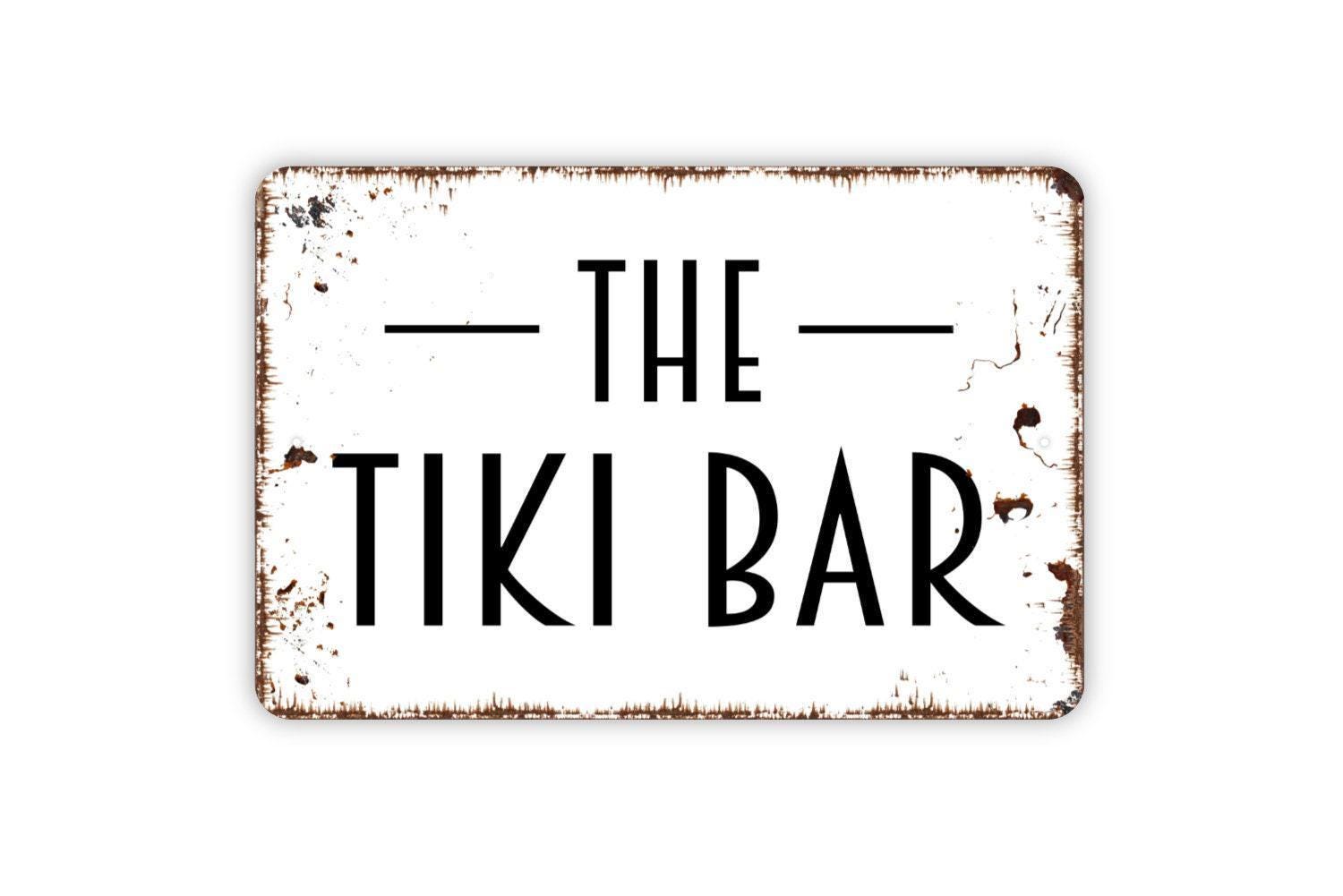 The Tiki Bar Sign | Tropical Luau Party Beach Decor | Metal Sign or Vinyl Sticker for Patio Backyard Pool Bar Home