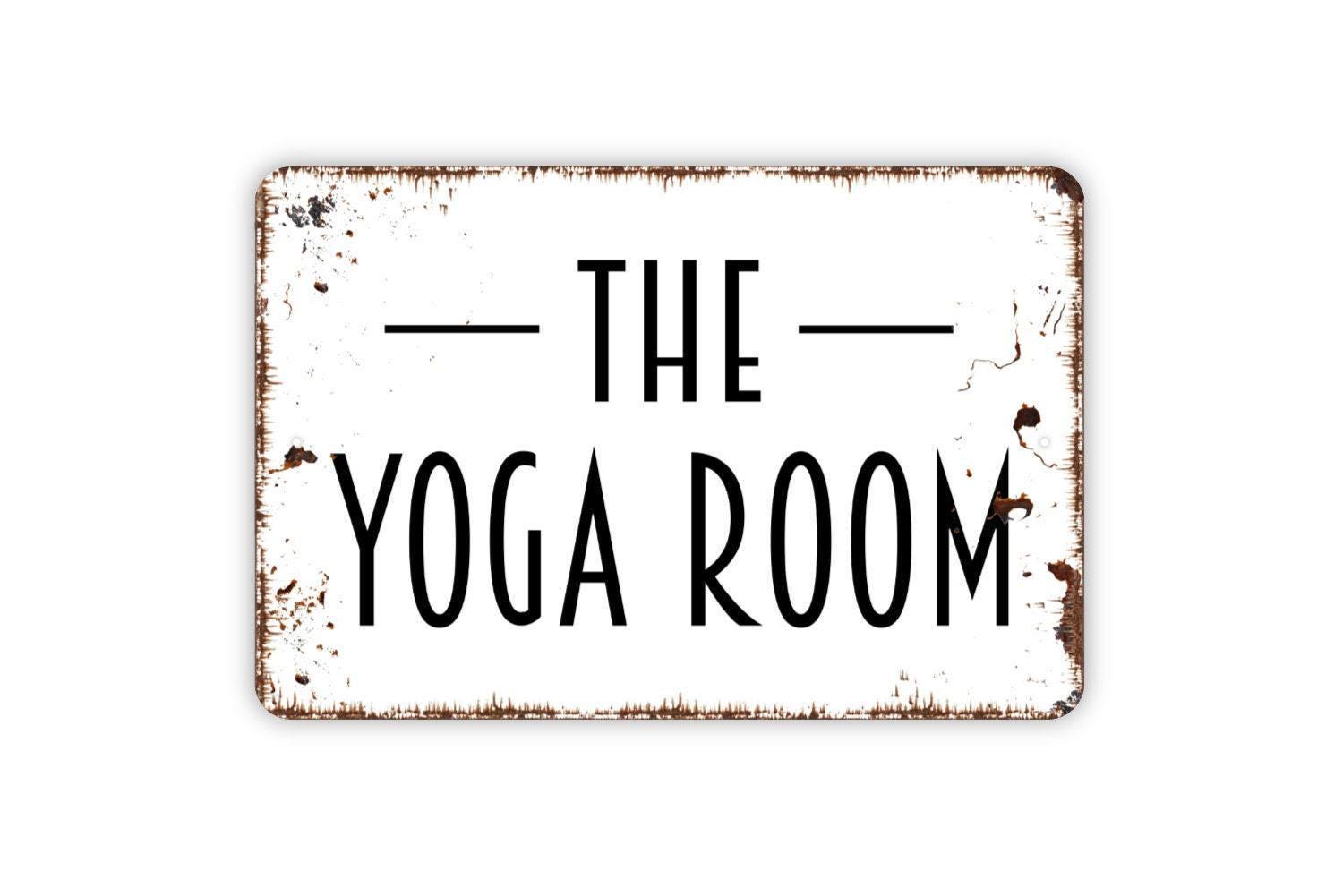 The Yoga Room Sign | Rustic Wellness Wall Sign for Home Studio, Gym, or Spa | Farmhouse Style Metal Sign or Vinyl Sticker Meditation Décor