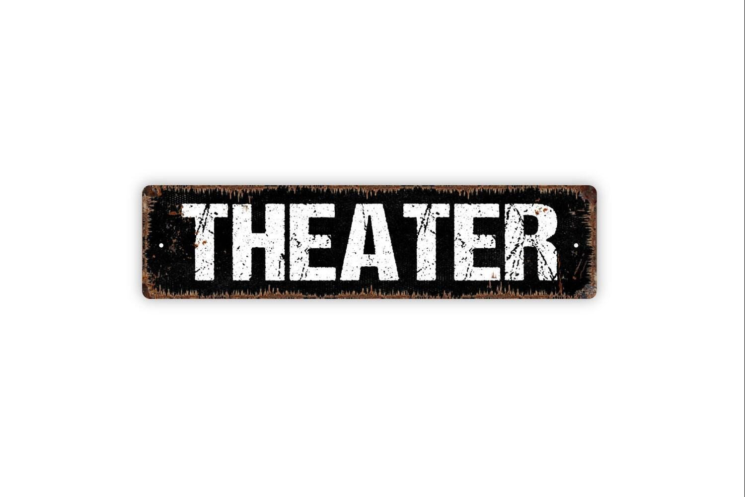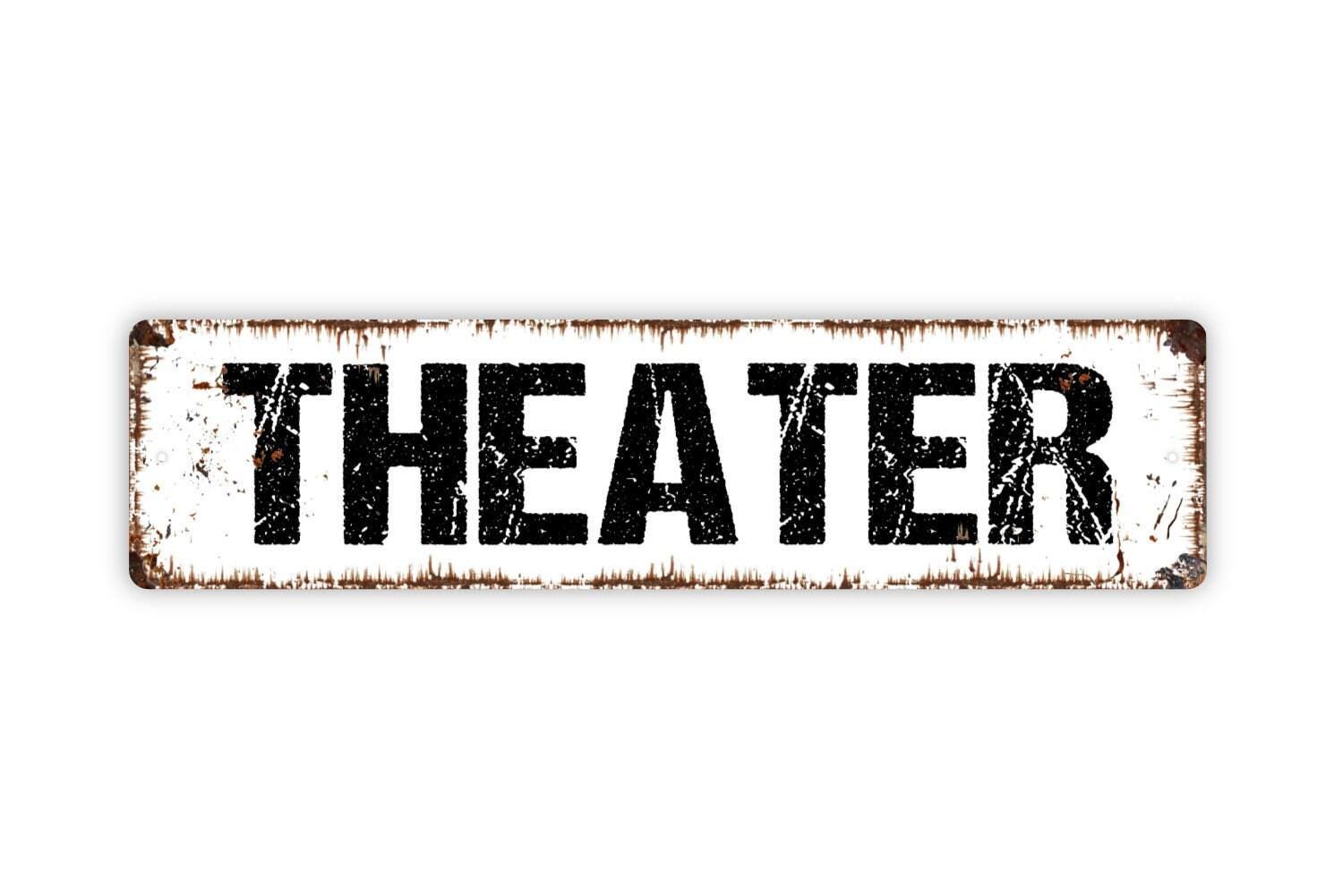 Theater Sign - Cinema Movies Video Popcorn Media Room Vinyl Sticker Or Street Metal Sign or Door Name Plate Plaque